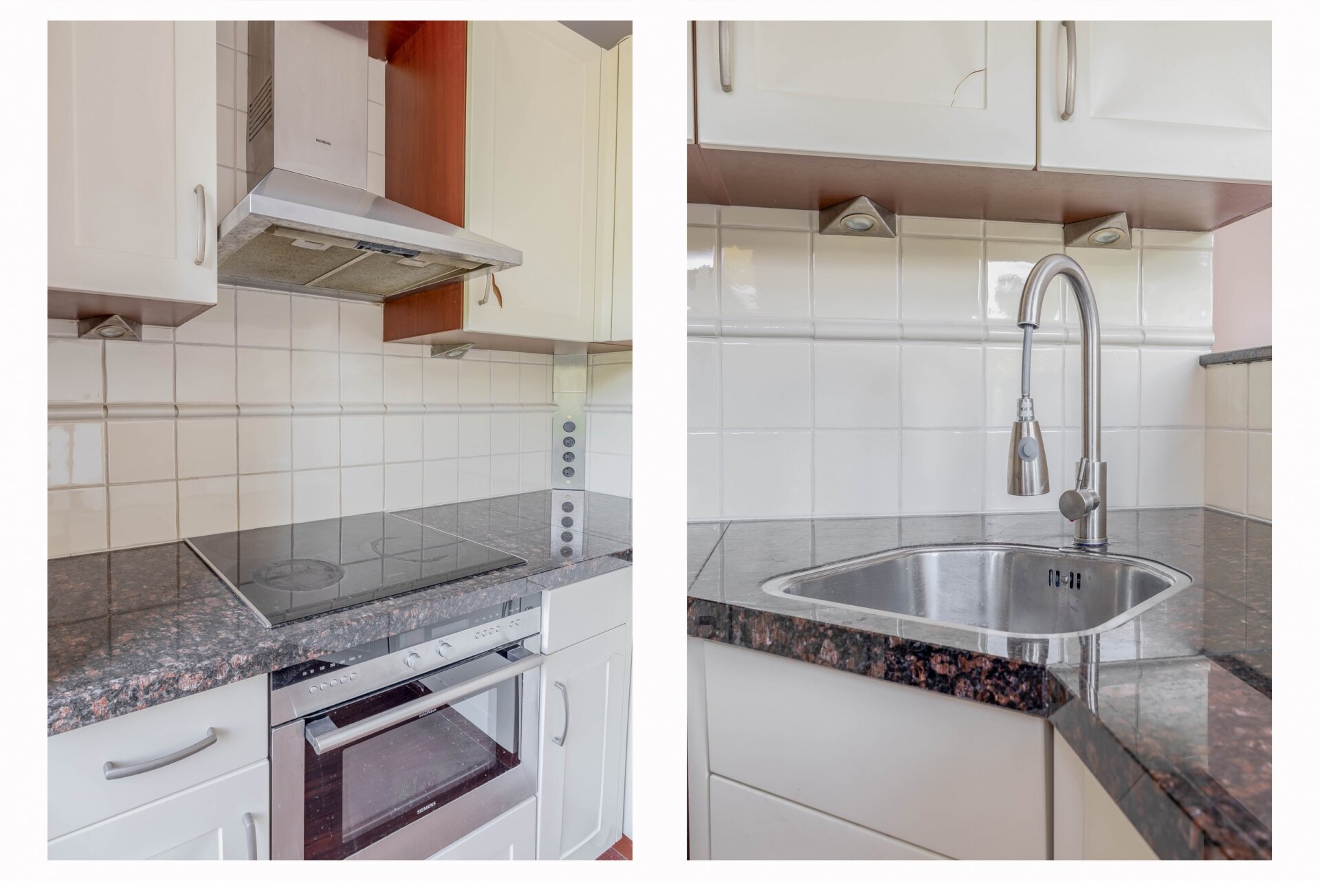 De eerste verdieping vormt het hart van het appartement. De woonkamer strekt zich uit over de hele lengte van de woning, waardoor je profiteert van veel licht en een fijne indeling. Aan de achterzijde vind je de open woonkeuken met eetgedeelte: een plek waar je gezellig kunt koken en tafelen met vrienden of familie. De keuken is compleet uitgevoerd met o.a. een vaatwasser, koel-/vriescombinatie, combimagnetron, afzuigkap en keramische kookplaat. Vanuit hier stap je zo het balkon op, ideaal voor een kop koffie in de ochtendzon.
