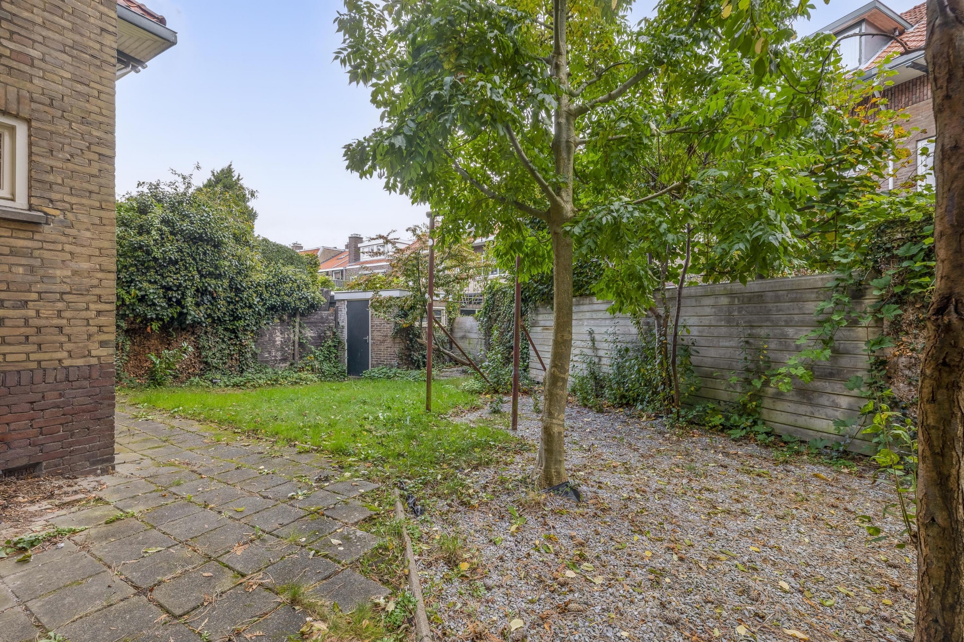 Er zijn volop mogelijkheden voor fietsenberging of uitbreiding aan de achterzijde, is dit een praktische én sfeervolle buitenruimte. De zijkant van het huis heeft bovendien een eigen toegang, ideaal voor een verbouwing of toekomstige uitbreiding.