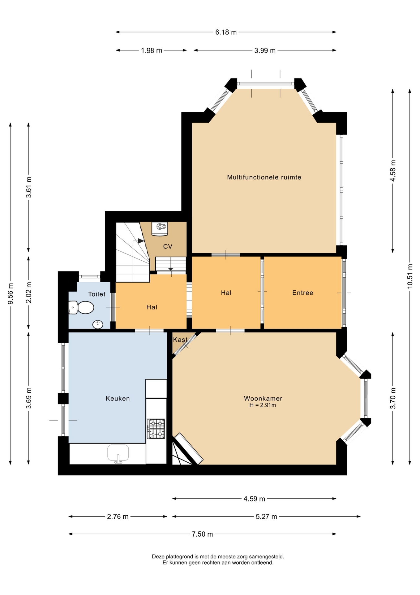 “Deze informatie is door ons met de nodige zorgvuldigheid samengesteld. Onzerzijds wordt echter geen enkele aansprakelijkheid aanvaard voor enige onvolledigheid, onjuistheid of anderszins, dan wel de gevolgen daarvan. Alle opgegeven maten en oppervlakten zijn indicatief.”