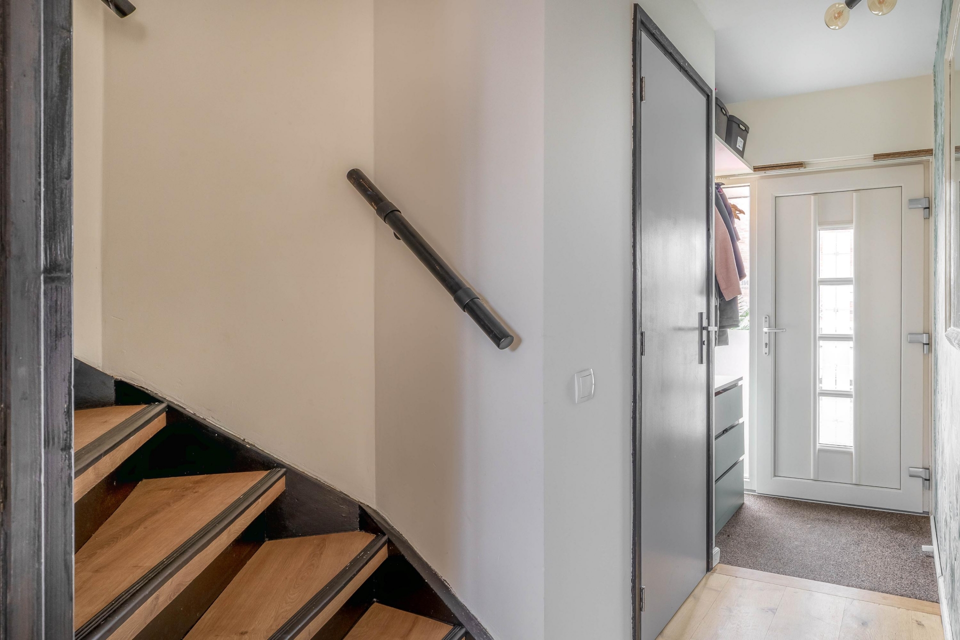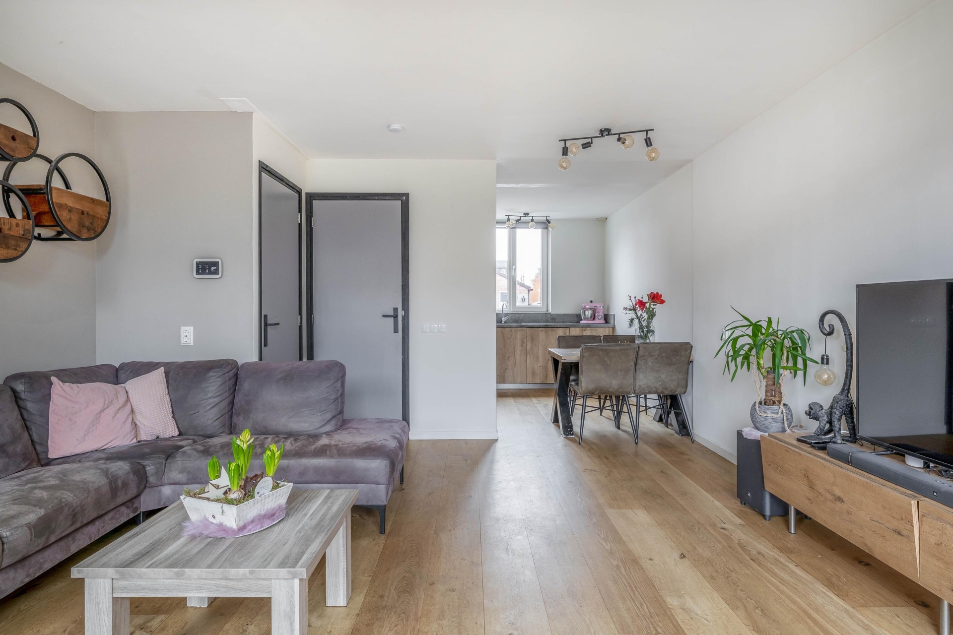 Overal in het huis ligt een nette laminaatvloer, de binnendeuren zijn vernieuwd en voorzien van houten kozijnen, en het geheel is strak en modern afgewerkt. De kunststof kozijnen met HR++ glas (2017) dragen bij aan het onderhoudsarme karakter én zorgen voor een energiezuinig geheel.