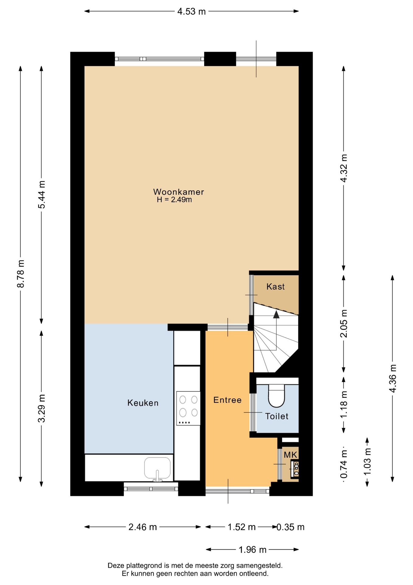 “Deze informatie is door ons met de nodige zorgvuldigheid samengesteld. Onzerzijds wordt echter geen enkele aansprakelijkheid aanvaard voor enige onvolledigheid, onjuistheid of anderszins, dan wel de gevolgen daarvan. Alle opgegeven maten en oppervlakten zijn indicatief.”