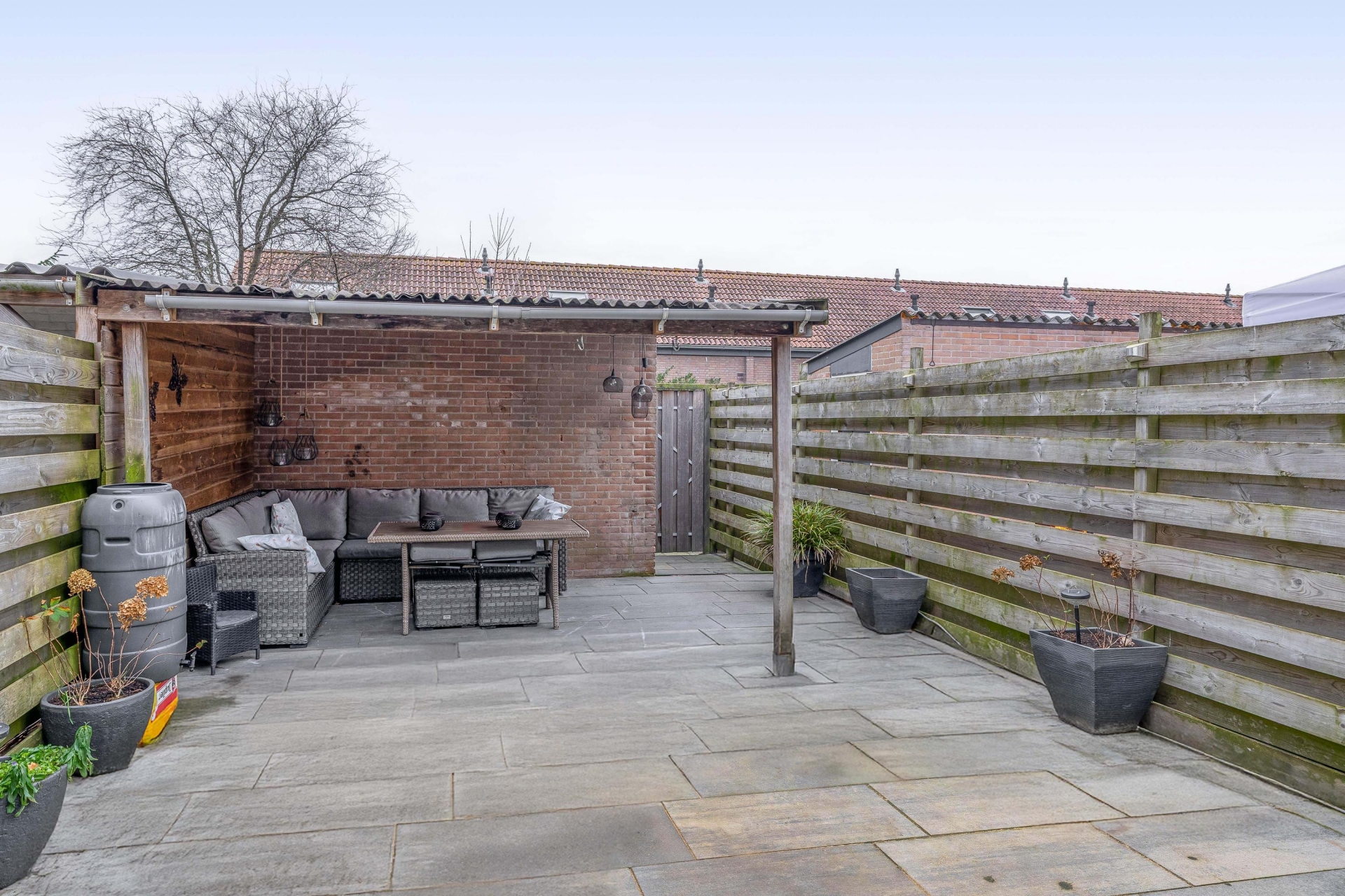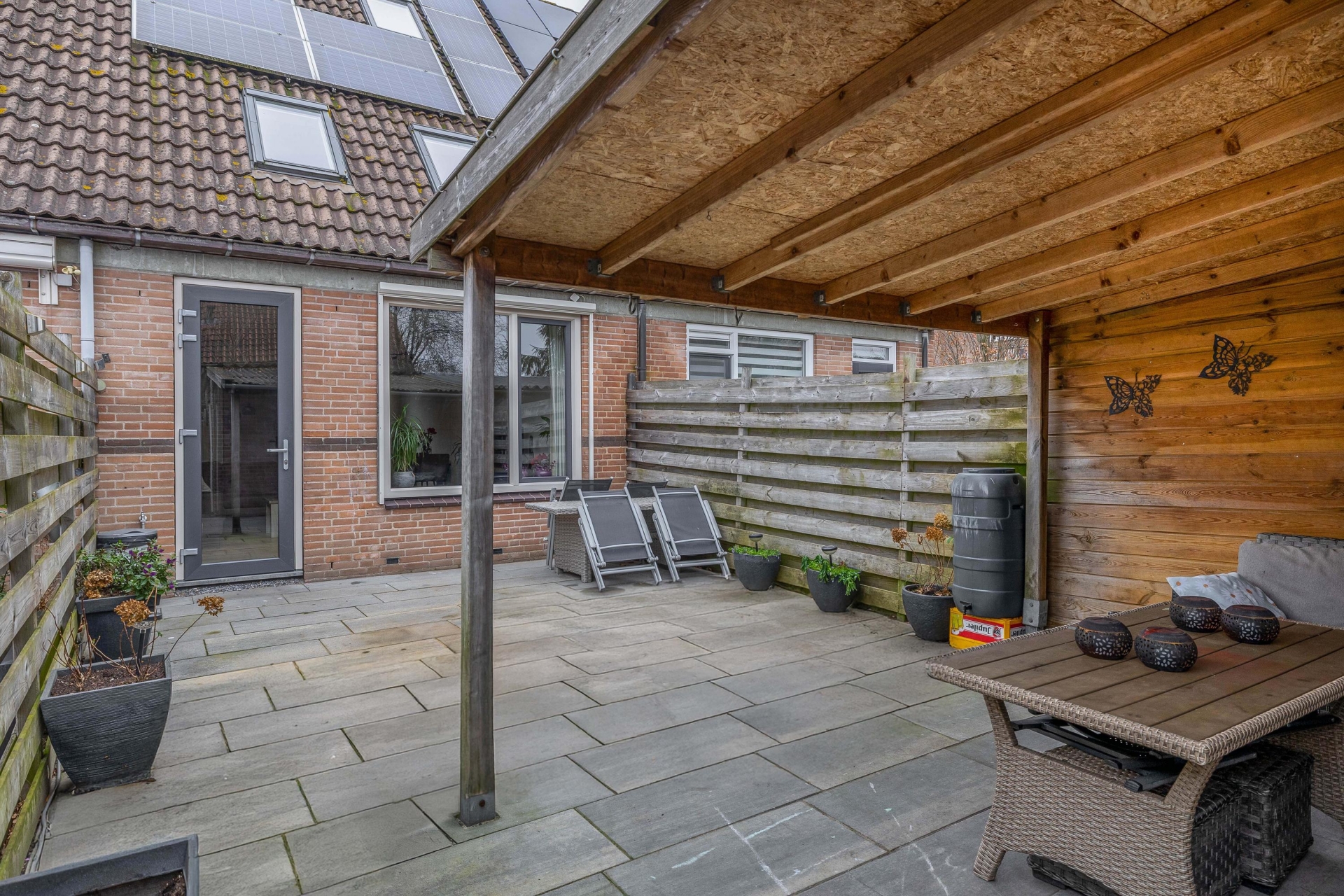 De tuin is echt een verlengstuk van de woonkamer. Dankzij de zuid-ligging geniet je hier volop van de zon. De ligging aan de achterzijde is privé en rustig, met ruimte om te spelen, te tuinieren of gezellig te eten met vrienden.