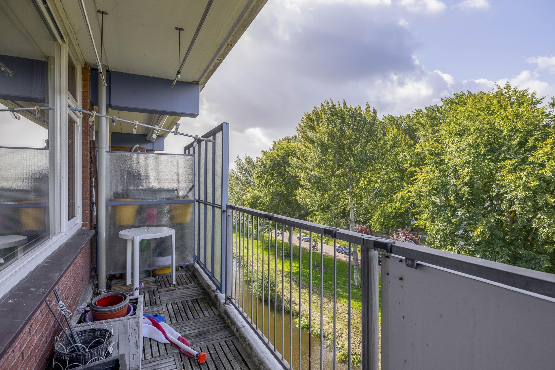 Via de slaapkamer heb je toegang tot het zonnige balkon op het zuidwesten. Hier kun je vanaf de middag tot in de avond genieten van de zon en het uitzicht op het groen. Een fijne plek voor een kop koffie of een goed glas wijn na een drukke dag.