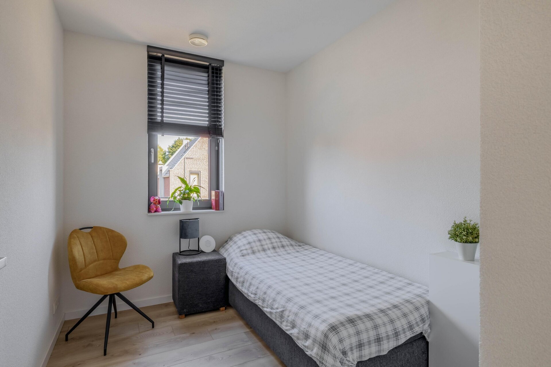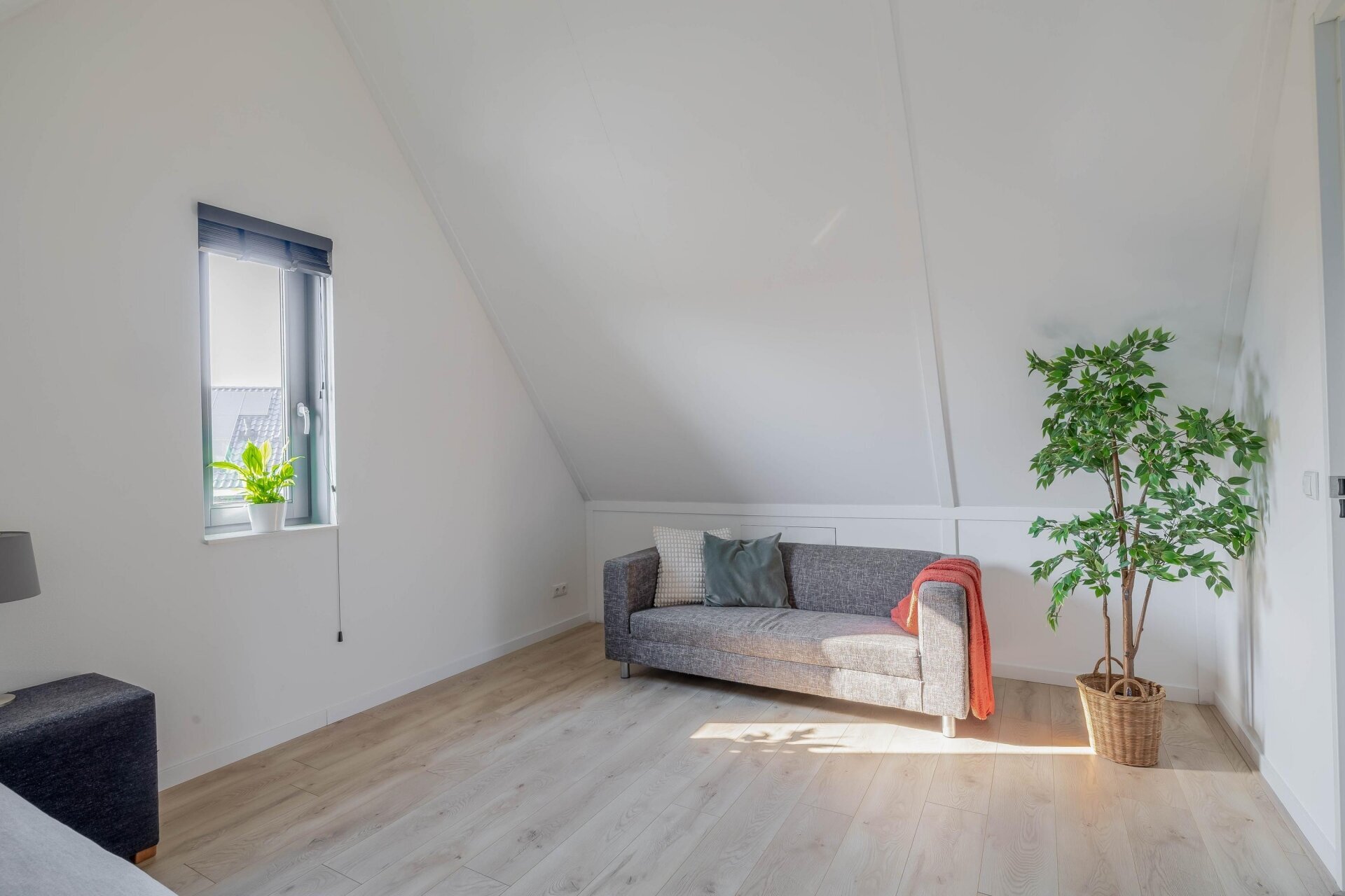 Op de tweede verdieping bevindt zich één volwaardige slaapkamer. De tweede kamer op deze verdieping is ingericht als technische ruimte met de opstelling voor de wasmachine, de warmtepomp, het WTW-systeem en de omvormer van de zonnepanelen. Er zijn geen dakkapellen aanwezig, maar de rechte gevels en goede plafondhoogte zorgen voor voldoende ruimte en lichtinval.