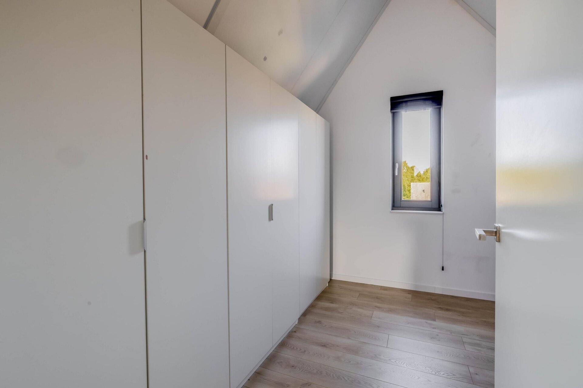 De eerste verdieping biedt drie slaapkamers, waarvan de grootste is voorzien van een royale inloopkast. De badkamer is strak afgewerkt en voorzien van een inloopdouche, een enkele wastafel met meubel en een toilet. Voor extra comfort is hier een elektrische radiator geplaatst, ideaal tijdens koude ochtenden of frisse dagen.