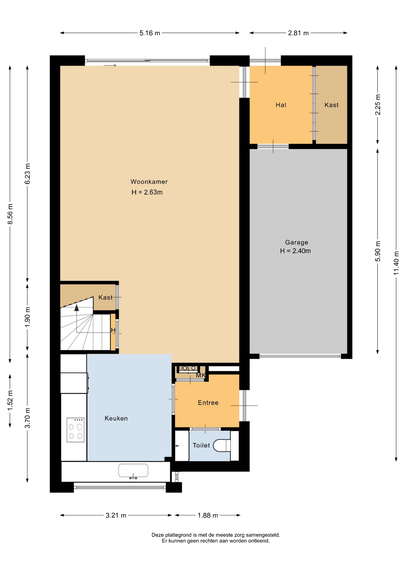 “Deze informatie is door ons met de nodige zorgvuldigheid samengesteld. Onzerzijds wordt echter geen enkele aansprakelijkheid aanvaard voor enige onvolledigheid, onjuistheid of anderszins, dan wel de gevolgen daarvan. Alle opgegeven maten en oppervlakten zijn indicatief.”