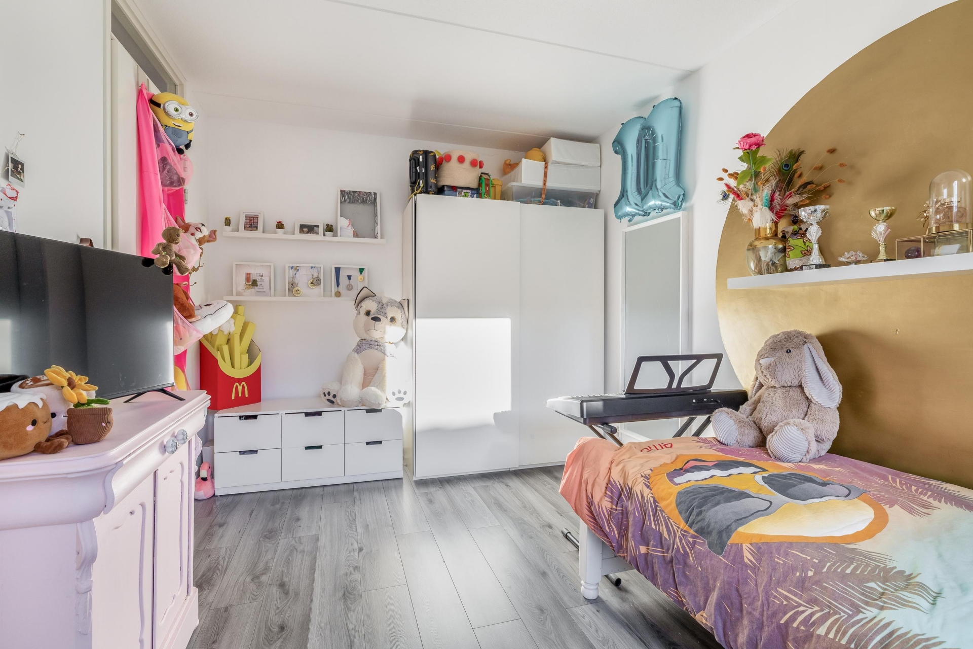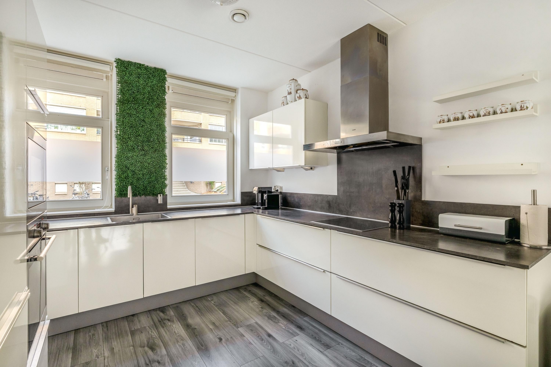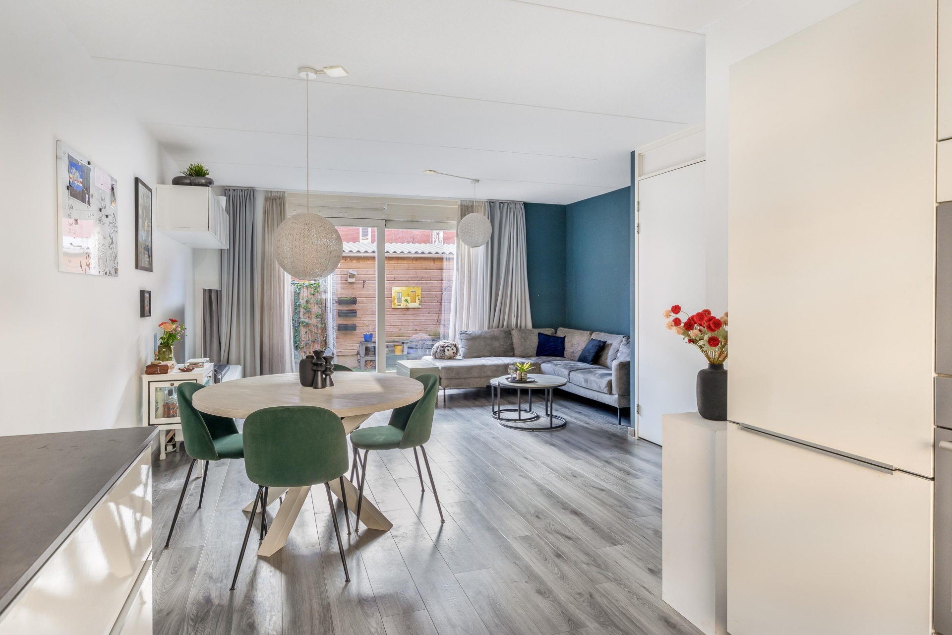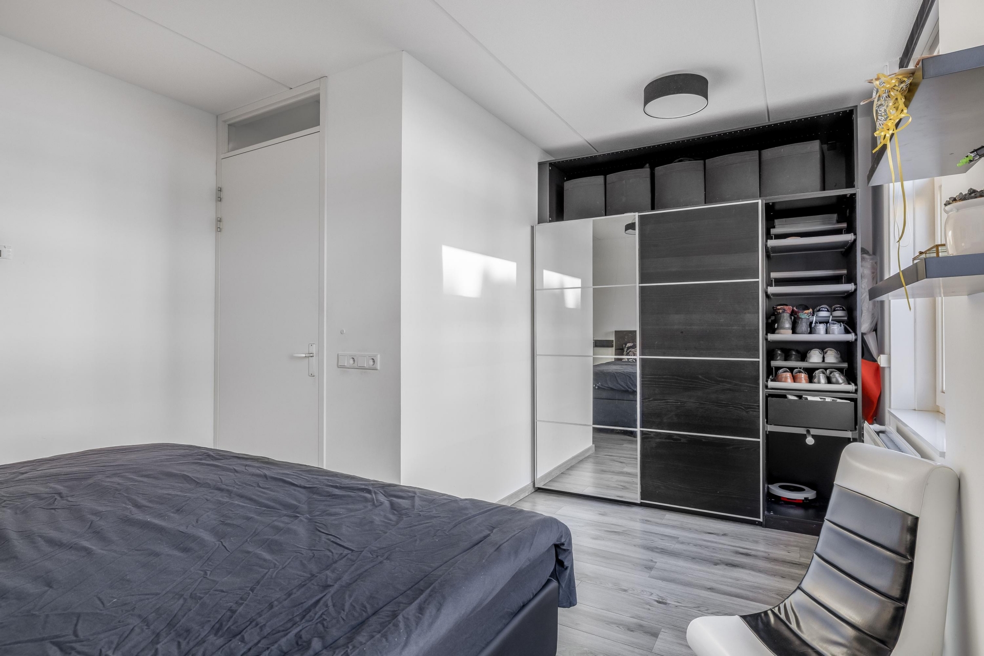 De begane grond is strak en stijlvol afgewerkt met gestucte wanden, stompe binnendeuren en een moderne laminaatvloer mét vloerverwarming. De open keuken aan de voorzijde is luxe uitgevoerd en voorzien van alle wenselijke inbouwapparatuur. Via de schuifpui stap je direct de achtertuin in, ideaal voor lange zomeravonden.