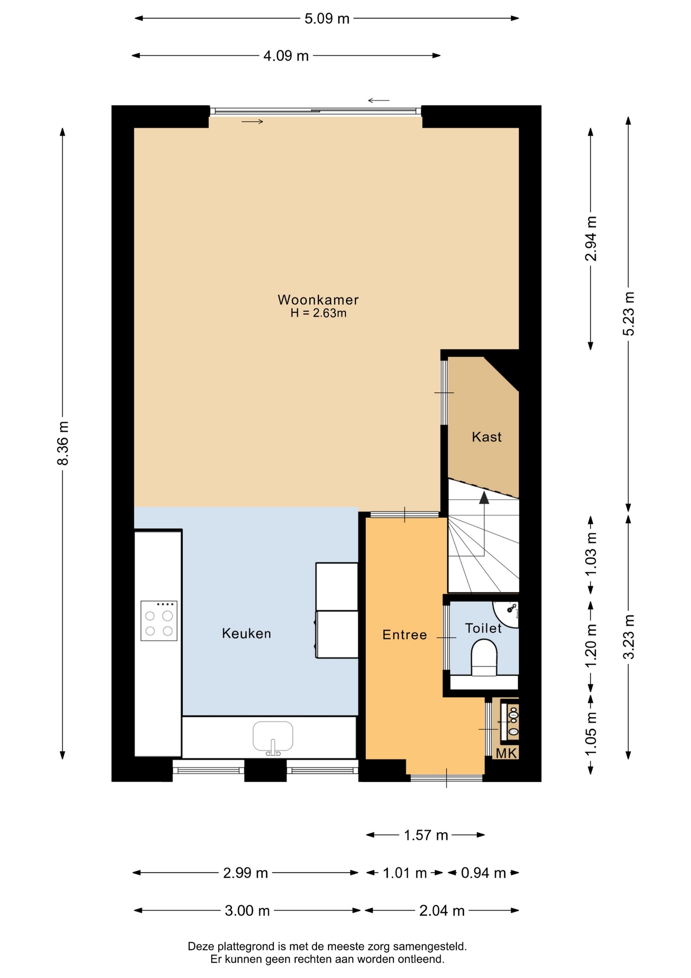 “Deze informatie is door ons met de nodige zorgvuldigheid samengesteld. Onzerzijds wordt echter geen enkele aansprakelijkheid aanvaard voor enige onvolledigheid, onjuistheid of anderszins, dan wel de gevolgen daarvan. Alle opgegeven maten en oppervlakten zijn indicatief.”