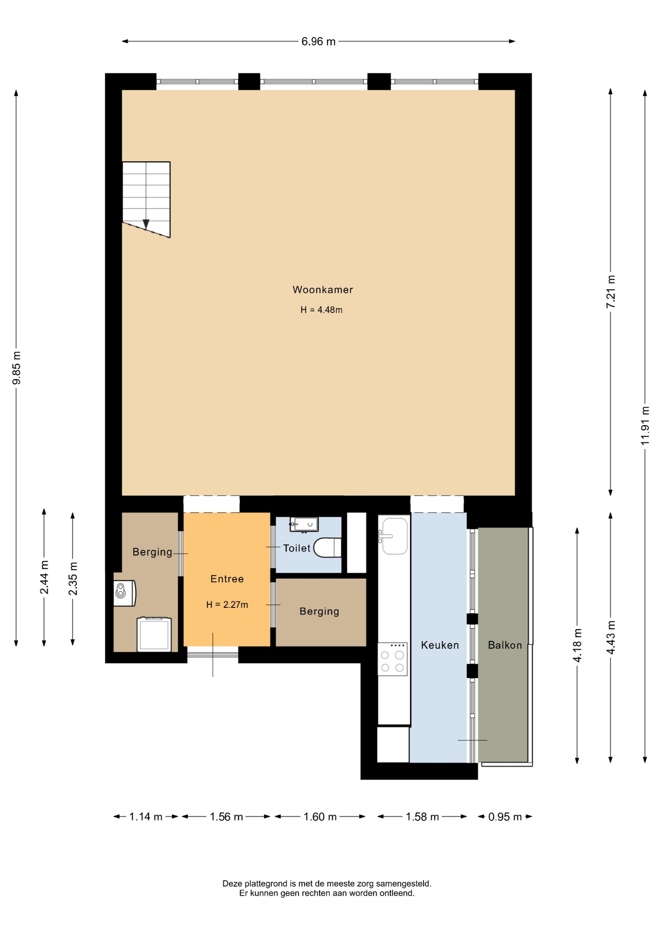 “Deze informatie is door ons met de nodige zorgvuldigheid samengesteld. Onzerzijds wordt echter geen enkele aansprakelijkheid aanvaard voor enige onvolledigheid, onjuistheid of anderszins, dan wel de gevolgen daarvan. Alle opgegeven maten en oppervlakten zijn indicatief.”