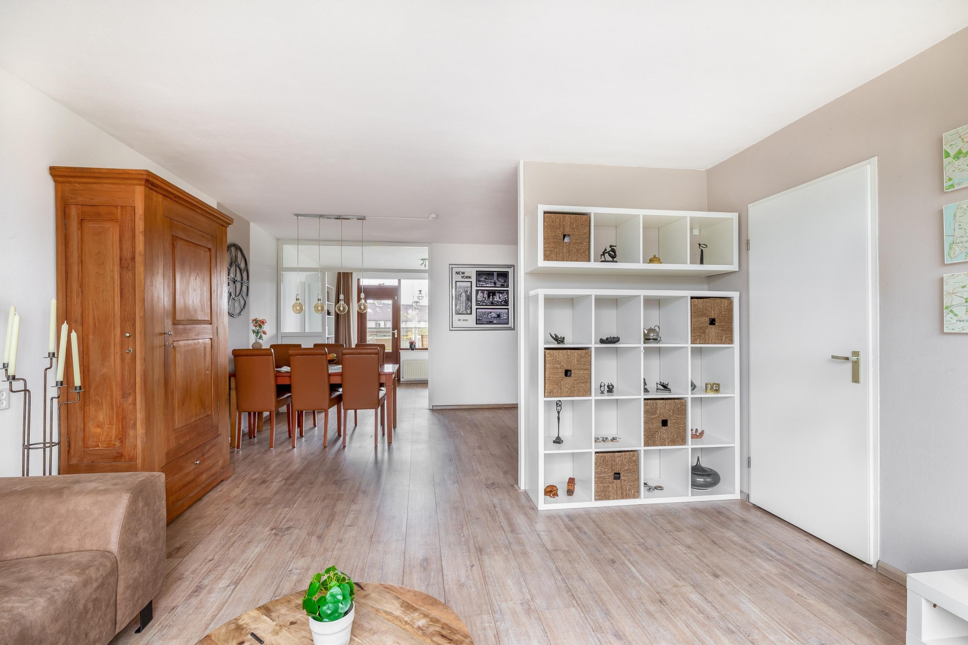 De woonkamer is een fijne, open ruimte met plek voor een royale zithoek én een gezellige eethoek. Dankzij de grote raampartijen valt het daglicht rijkelijk naar binnen. Via de slaapkamer aan de achterzijde stap je zo het balkon op, gelegen op het zuidoosten. Perfect voor een kop koffie in de ochtendzon of juist om ’s middags van het zonnetje te genieten. De warme kleur van de laminaatvloer zorgt voor een gezellige sfeer en een rustige basis voor elke woonstijl.