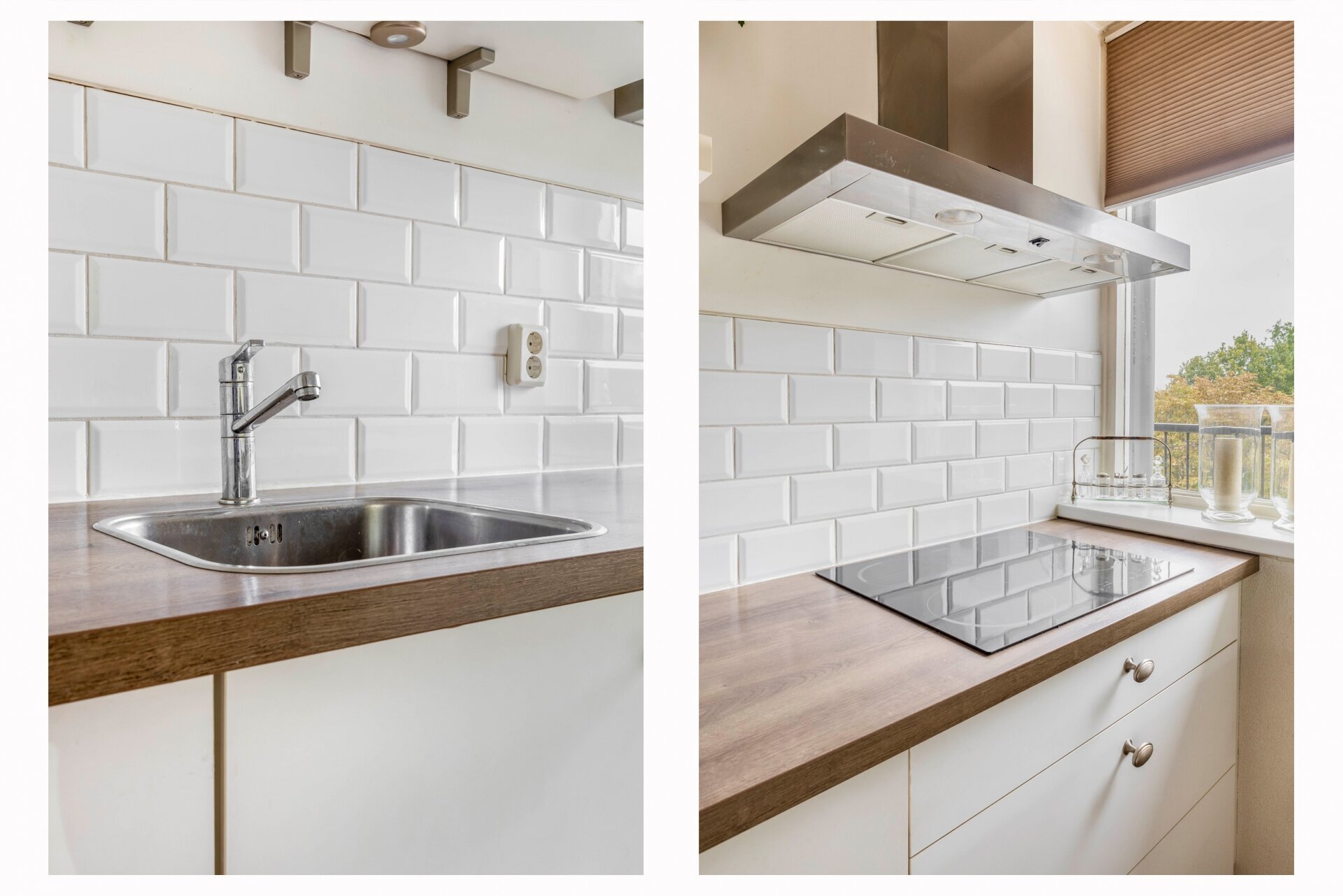 De woonkamer met open keuken voelt ruim en licht aan door de extra zijramen. Vanuit hier bereik je het royale balkon op het zuidoosten, dat dankzij de hoekligging is uitgebreid met een zijbalkon over de volledige lengte van het appartement – perfect voor zonliefhebbers!