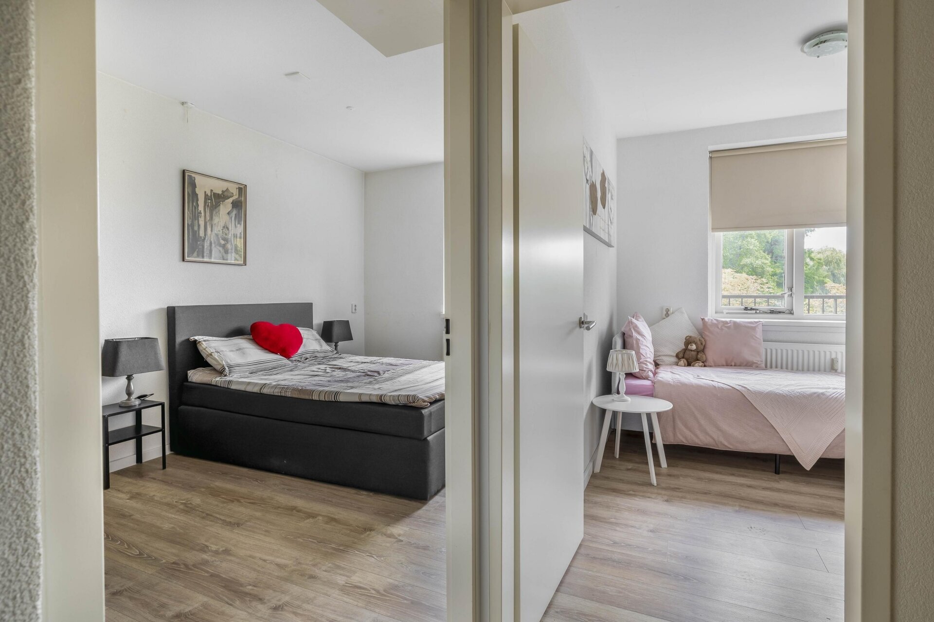 - Twee slaapkamers, waarvan één ruim genoeg voor een kastenwand