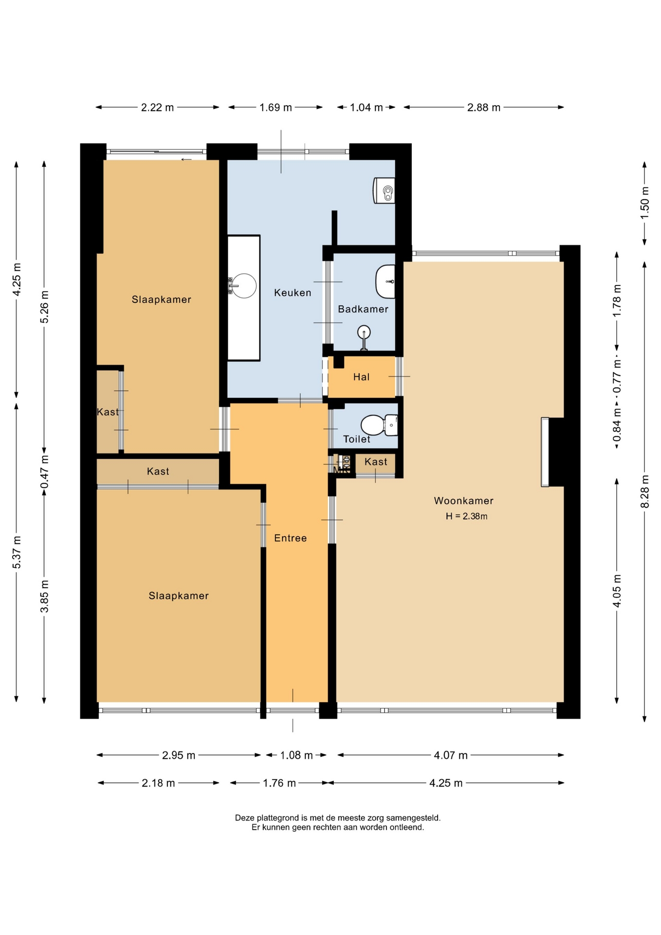 “Deze informatie is door ons met de nodige zorgvuldigheid samengesteld. Onzerzijds wordt echter geen enkele aansprakelijkheid aanvaard voor enige onvolledigheid, onjuistheid of anderszins, dan wel de gevolgen daarvan. Alle opgegeven maten en oppervlakten zijn indicatief.”