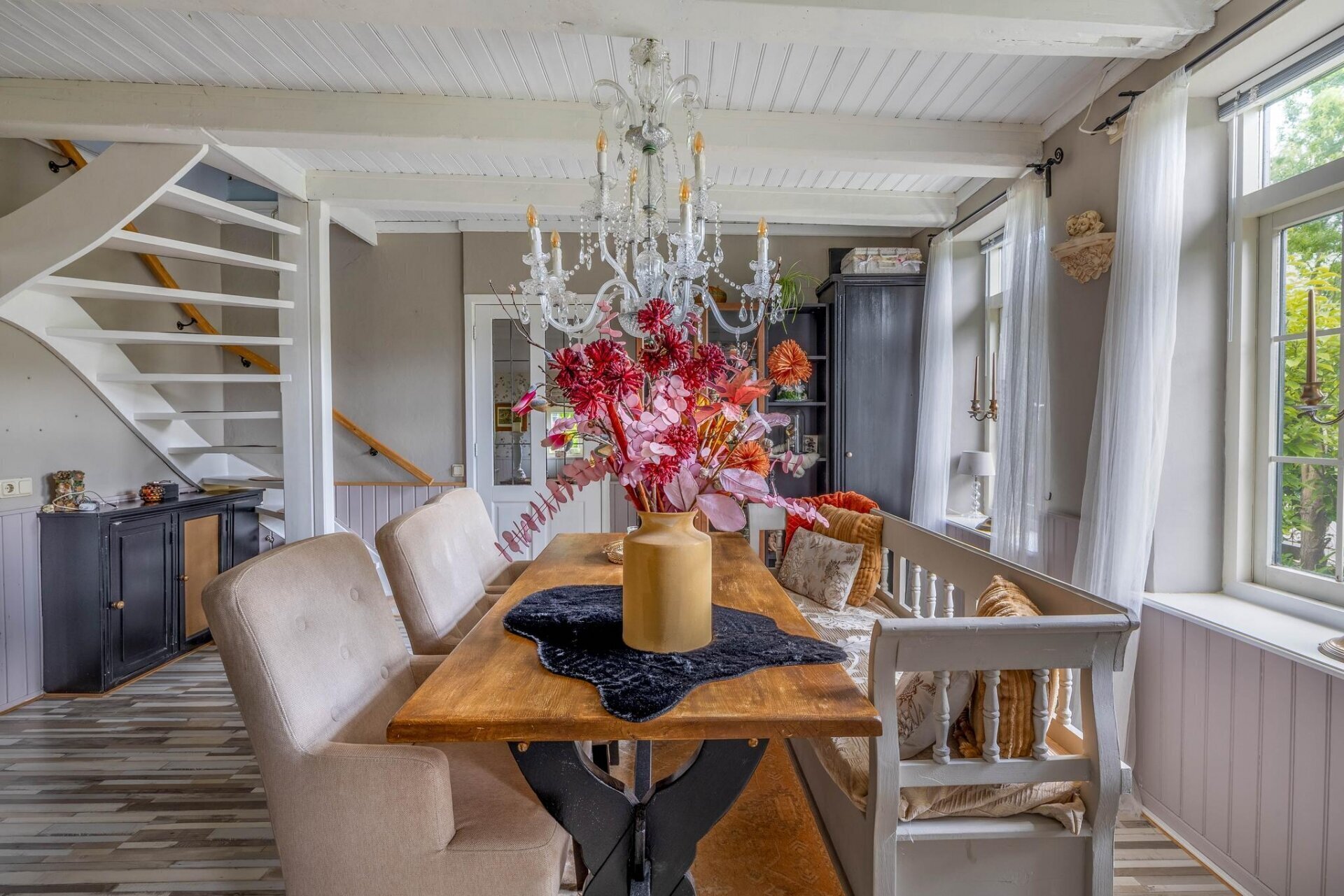 Zodra je de woonkamer binnenstapt, voel je direct de charme van dit huis. Authentieke elementen zoals het balkenplafond en de gezellige raampartijen geven de ruimte karakter, terwijl de lichte afwerking en het zicht op het groen zorgen voor rust. De eetkamer grenst aan de woonkamer en is perfect voor lange avonden tafelen met vrienden of familie. Alles is met elkaar verbonden, maar toch voelt elke ruimte op zichzelf fijn aan.