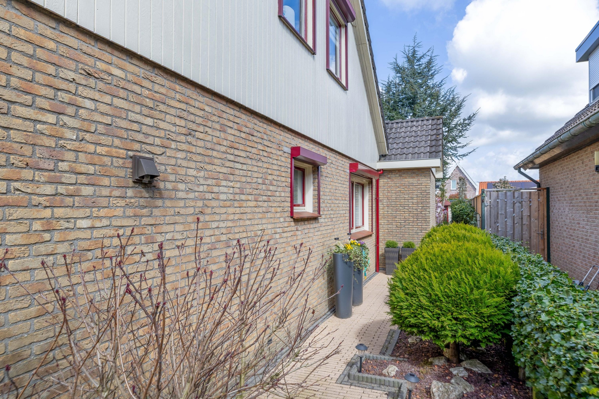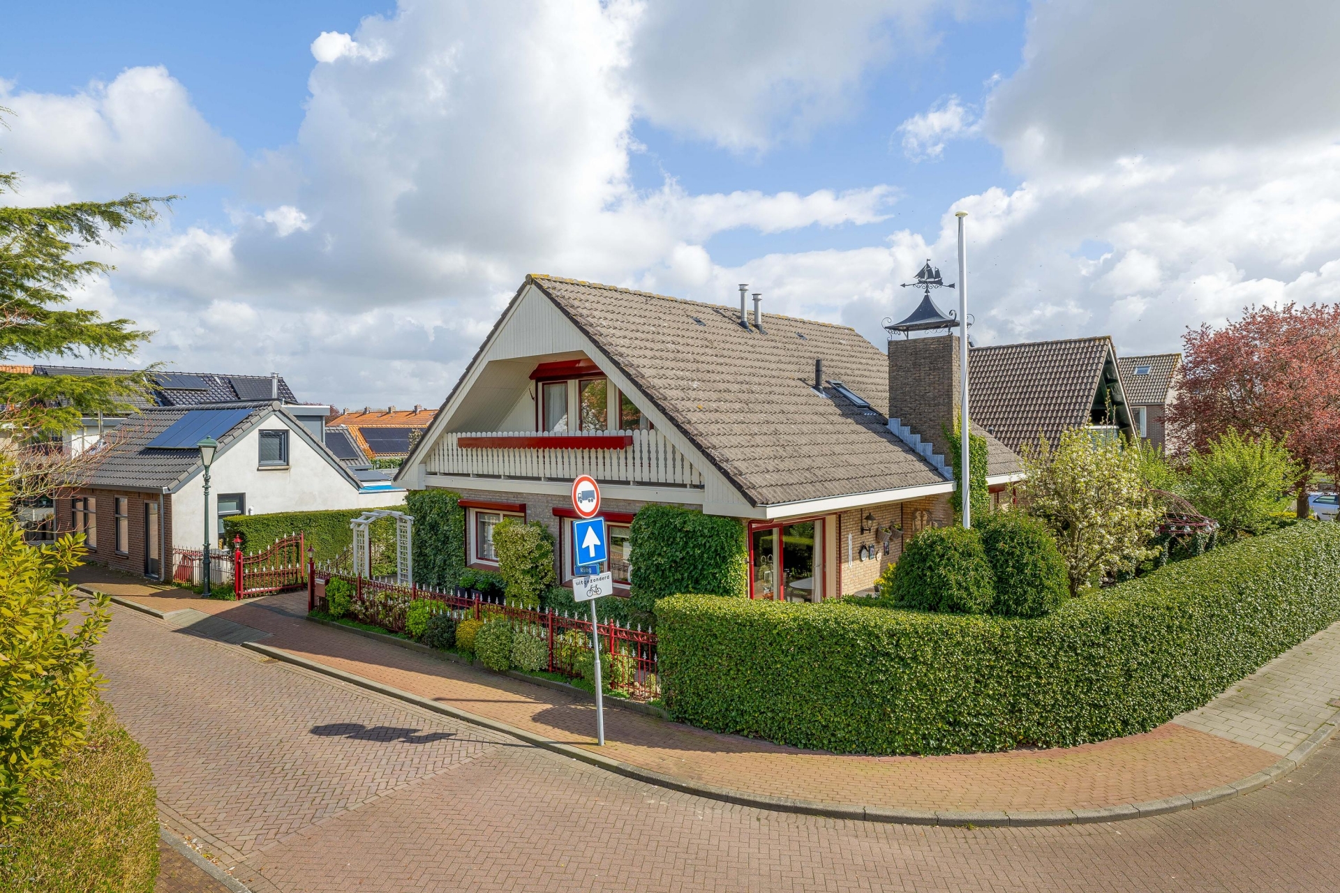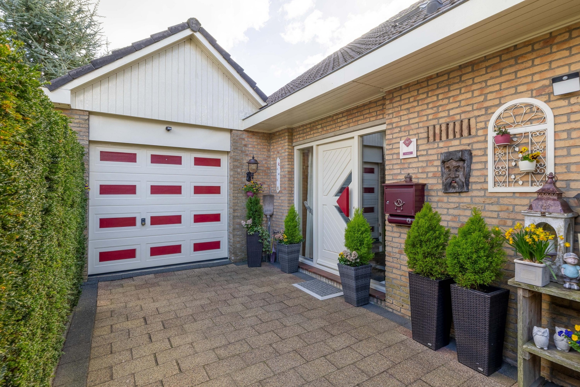 Bij aankomst valt direct de verzorgde uitstraling op. De oprit biedt ruimte om op eigen terrein te parkeren en geeft toegang tot de aangebouwde garage. De combinatie van het vrijstaande karakter, de nette en verzorgde tuin rondom en de rustige ligging zorgt direct voor een prettig gevoel.