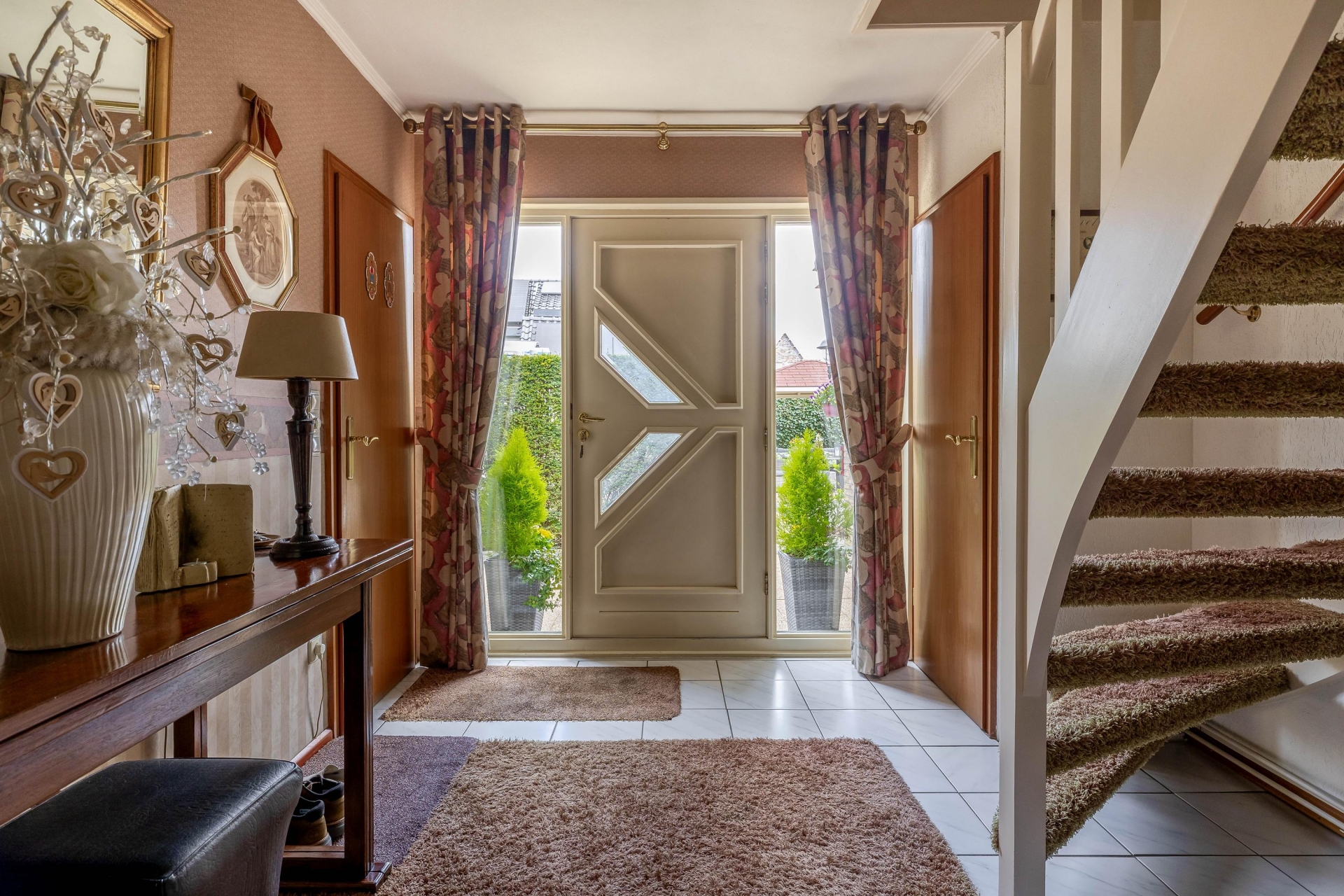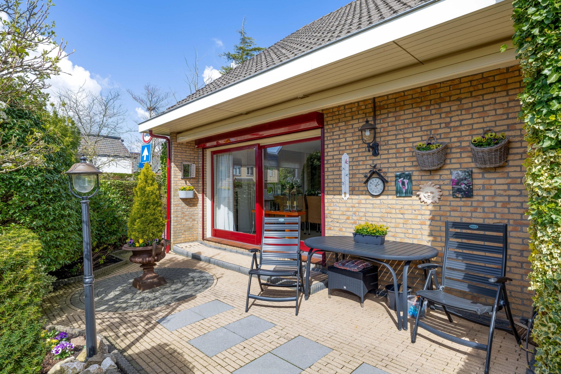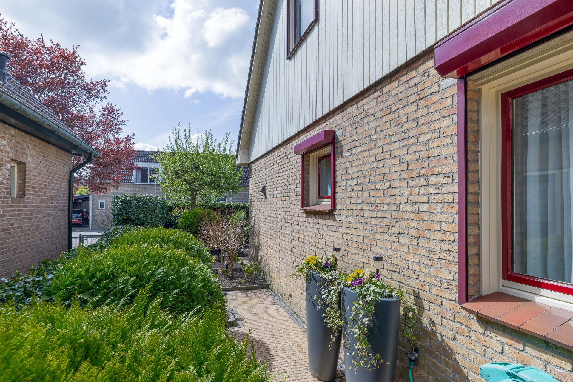 Bij aankomst valt direct de verzorgde uitstraling op. De oprit biedt ruimte om op eigen terrein te parkeren en geeft toegang tot de aangebouwde garage. De combinatie van het vrijstaande karakter, de nette en verzorgde tuin rondom en de rustige ligging zorgt direct voor een prettig gevoel.