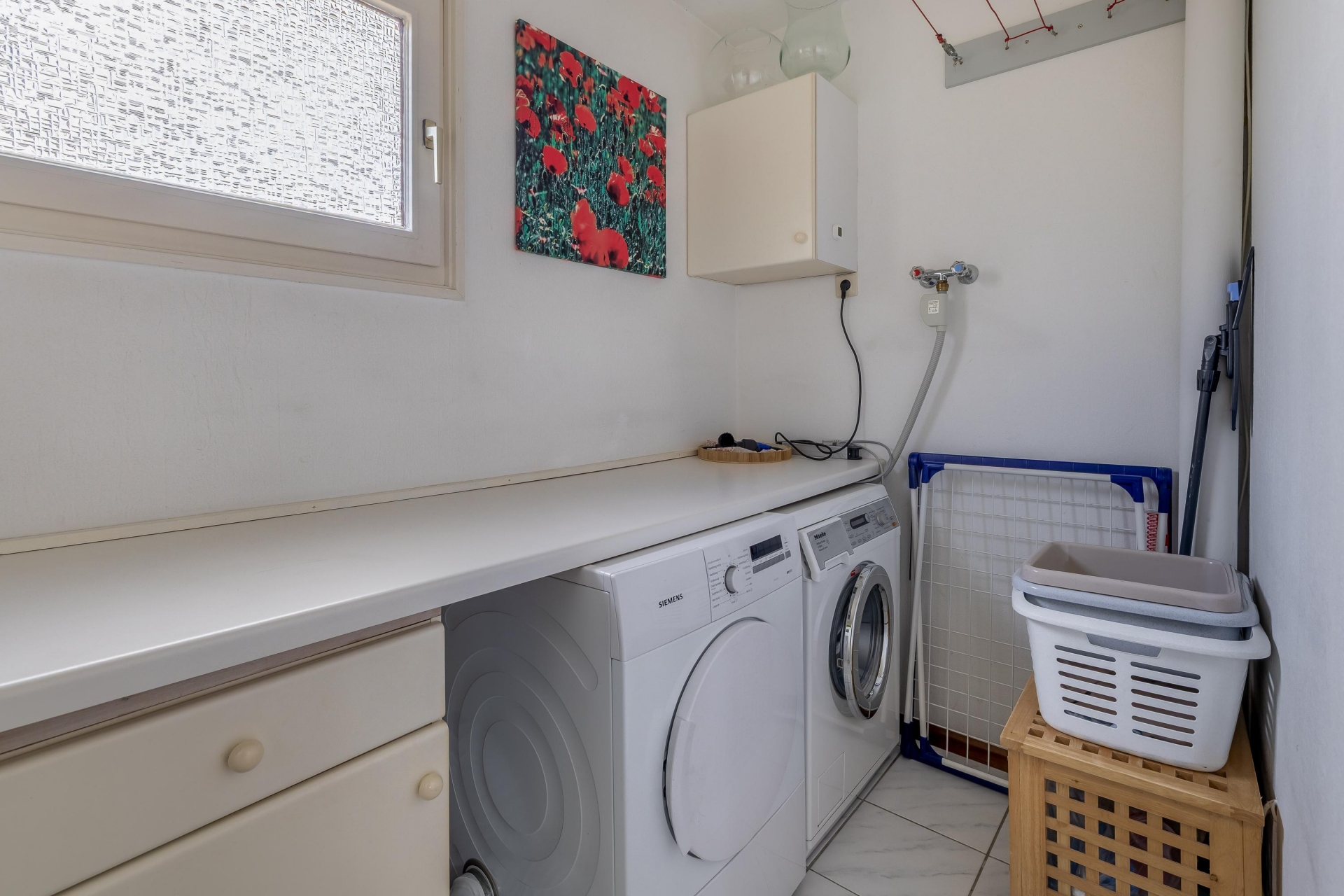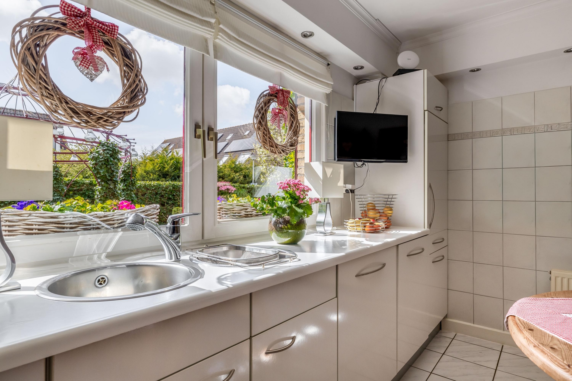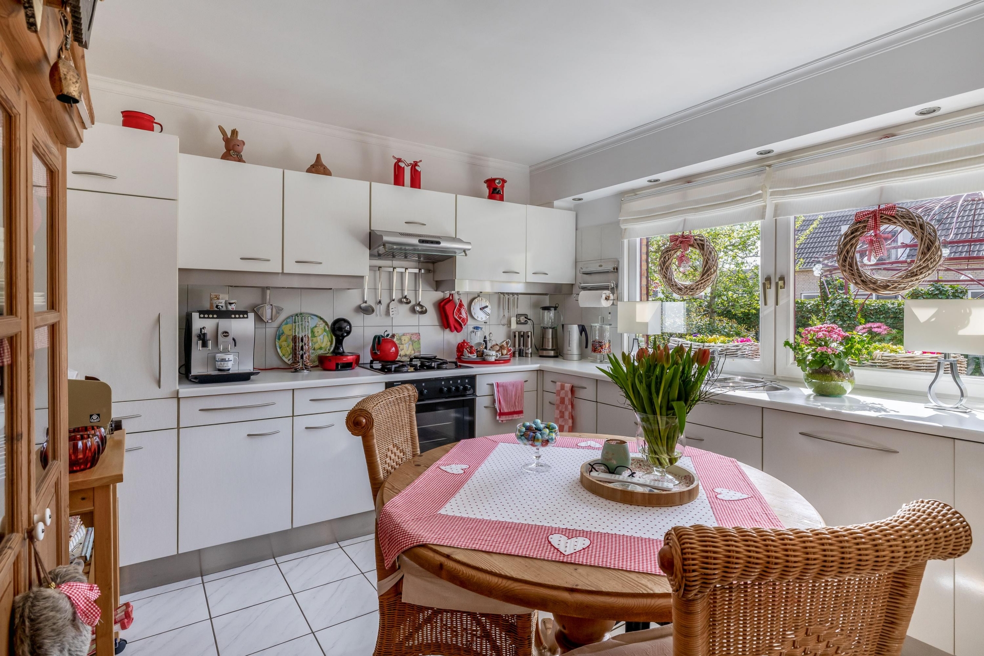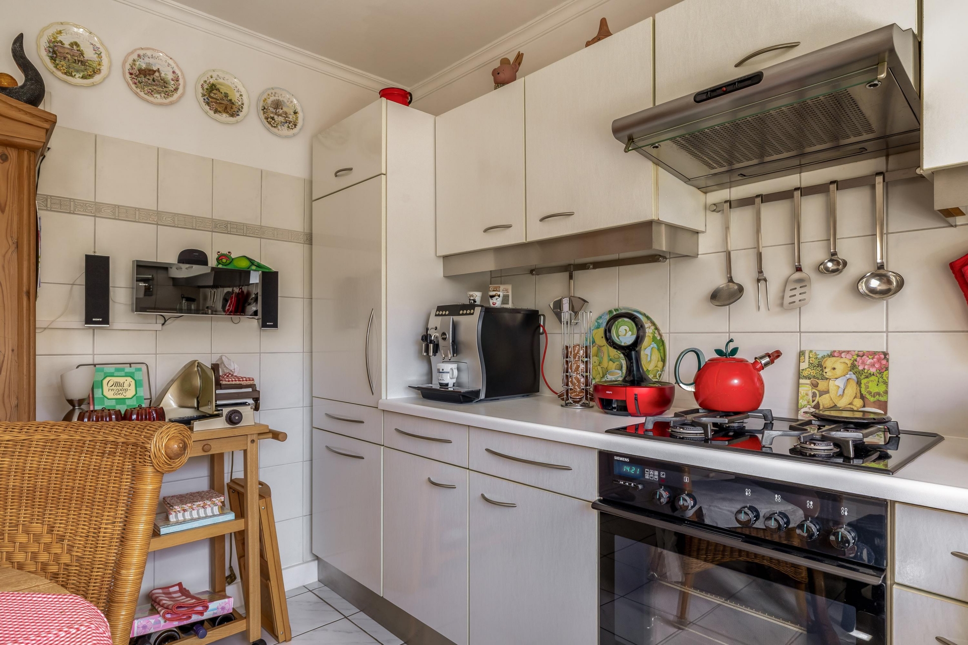 De keuken ligt aan de achterzijde en biedt een fijn uitzicht op het groen. Het is een verzorgde en functionele ruimte waar je met gemak uitgebreid kunt koken. Aan de voorzijde vind je de bijkeuken, ideaal voor extra opslag en het plaatsen van witgoed.