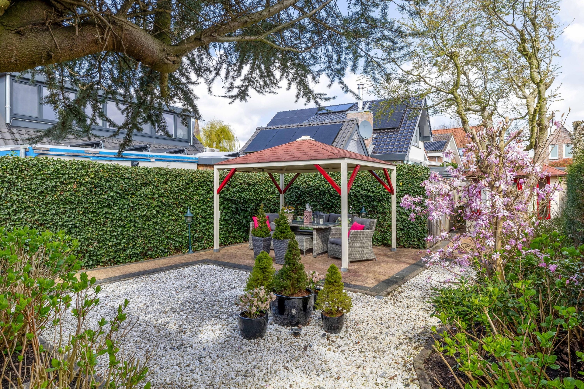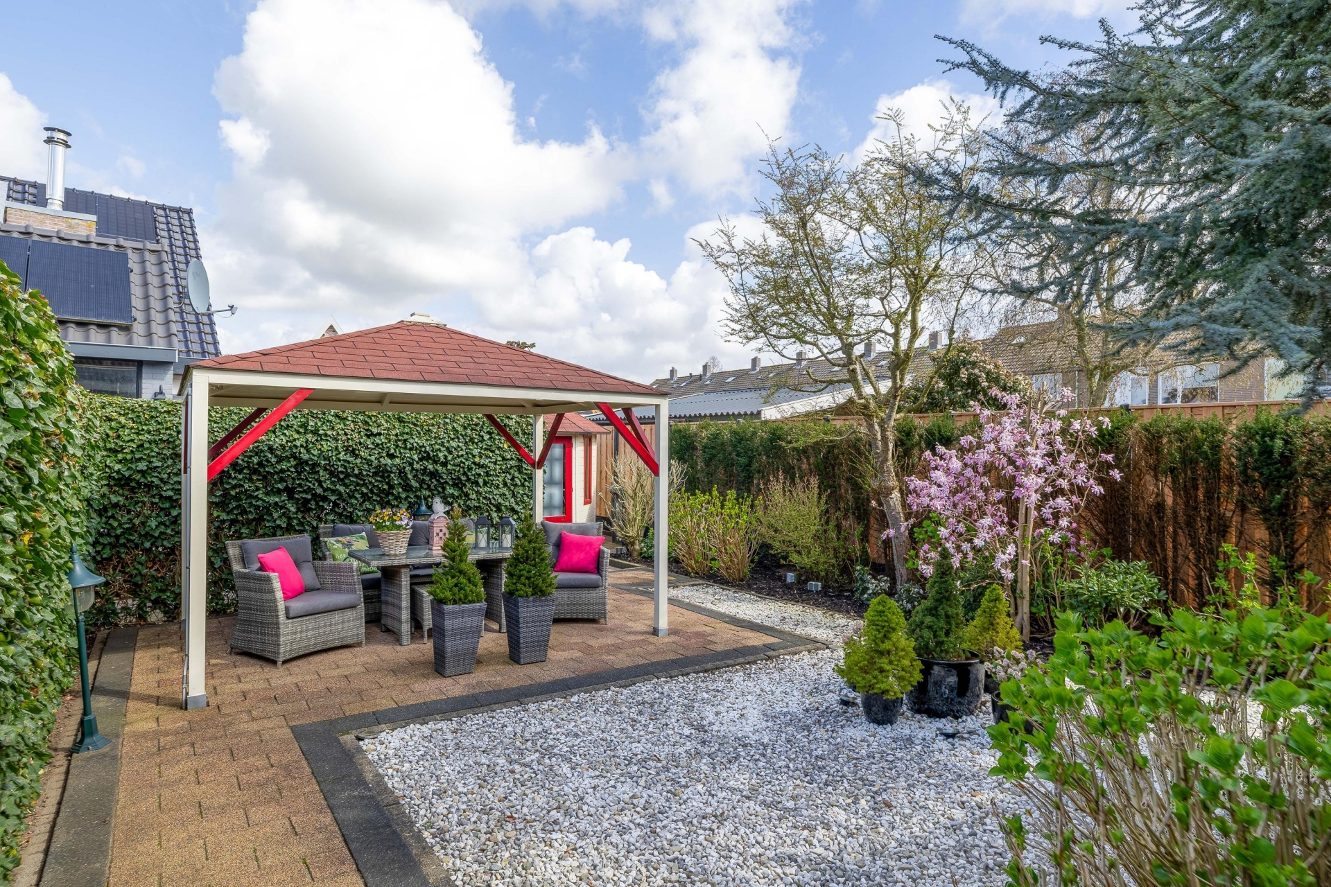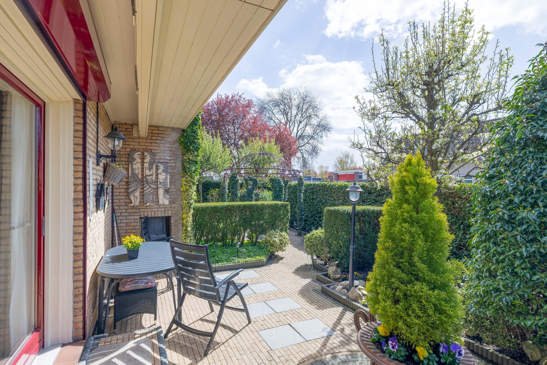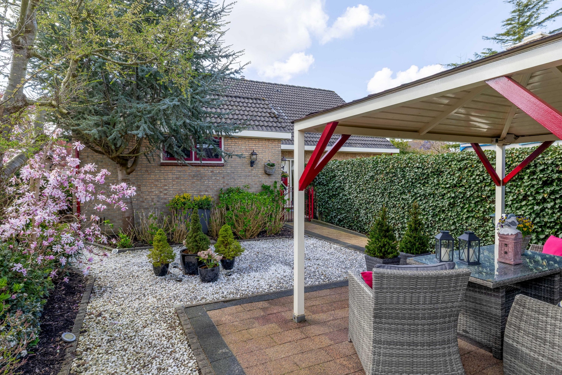VERZORGDE TUIN RONDOM MET OVERKAPPING
