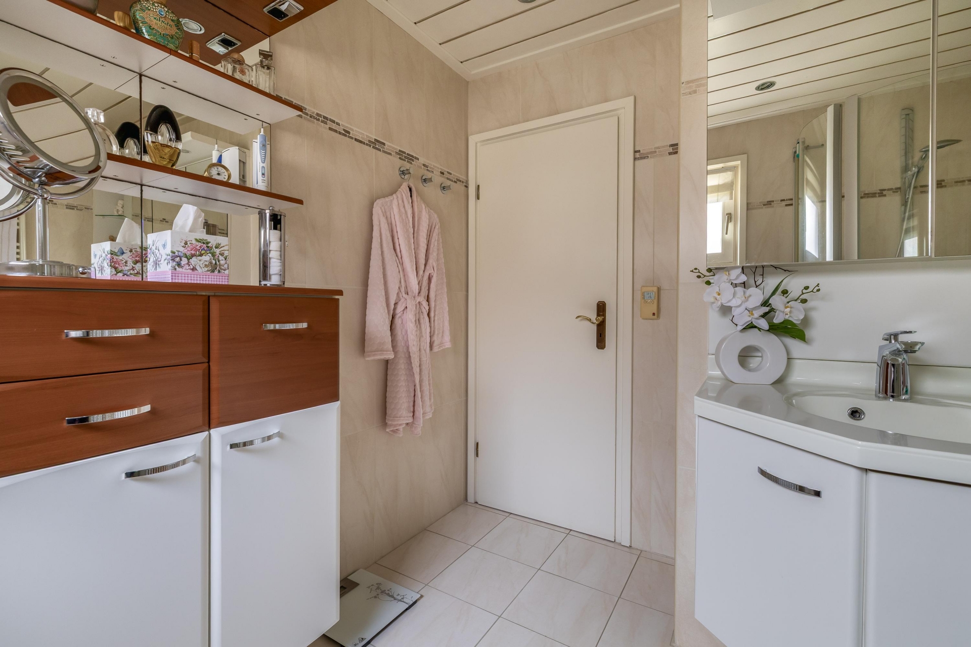Op de eerste verdieping vind je nog drie slaapkamers van goed formaat. De grootste slaapkamer heeft toegang tot het balkon, wat zorgt voor een extra stukje buitenruimte. Daarnaast is er een tweede badkamer aanwezig, wat het huis ook geschikt maakt voor grotere gezinnen of logees.