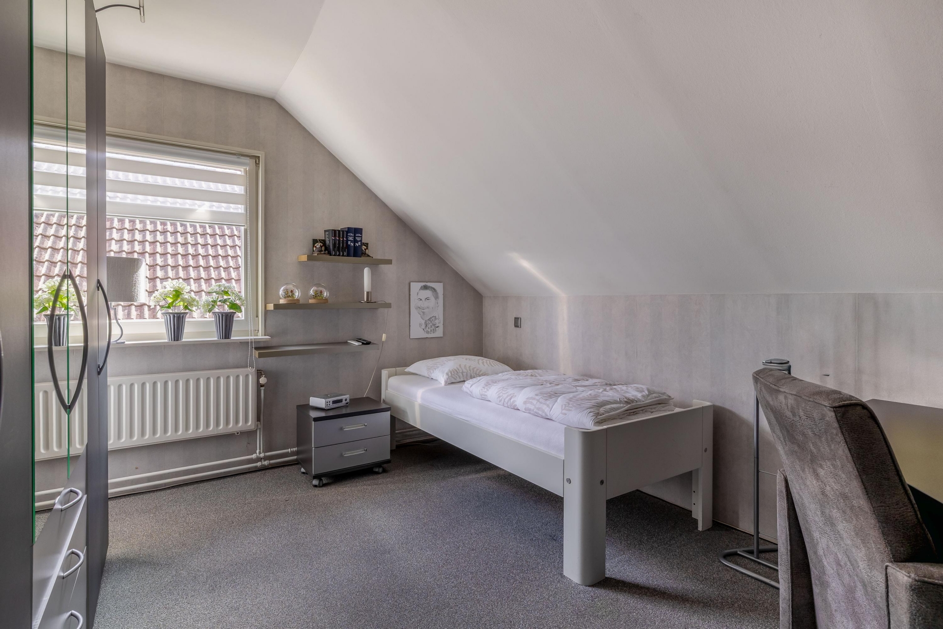 Wat dit huis extra aantrekkelijk maakt, is de levensloopbestendige indeling. Op de begane grond bevindt zich een ruime slaapkamer met daarnaast een badkamer. Ideaal voor wie gelijkvloers wil wonen of alvast voorbereid wil zijn op de toekomst.