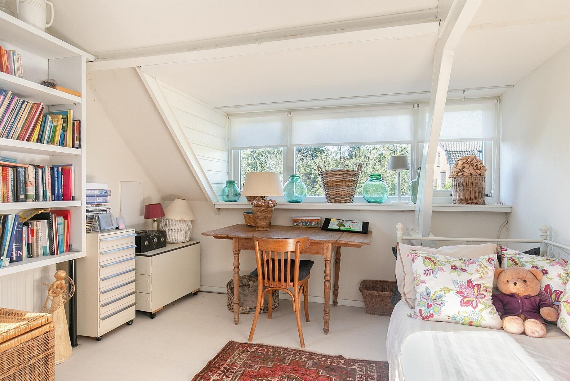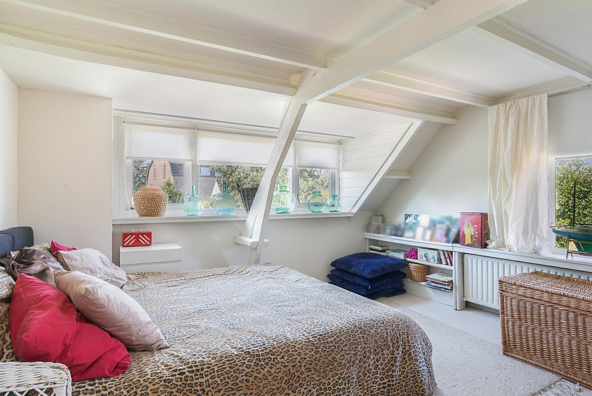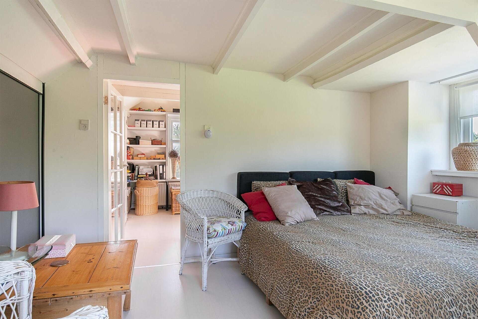 De overloop biedt toegang tot een ruime slaapkamer met schuifkastenwand met CV ketel. Het zijraam en dakkapel zorgen voor een mooie lichtinval. Vanuit deze slaapkamer bevindt u zich in Slaapkamer 3, eveneens voorzien van een dakkapel, zijraam, entresol met opbergruimte en vaste kasten.