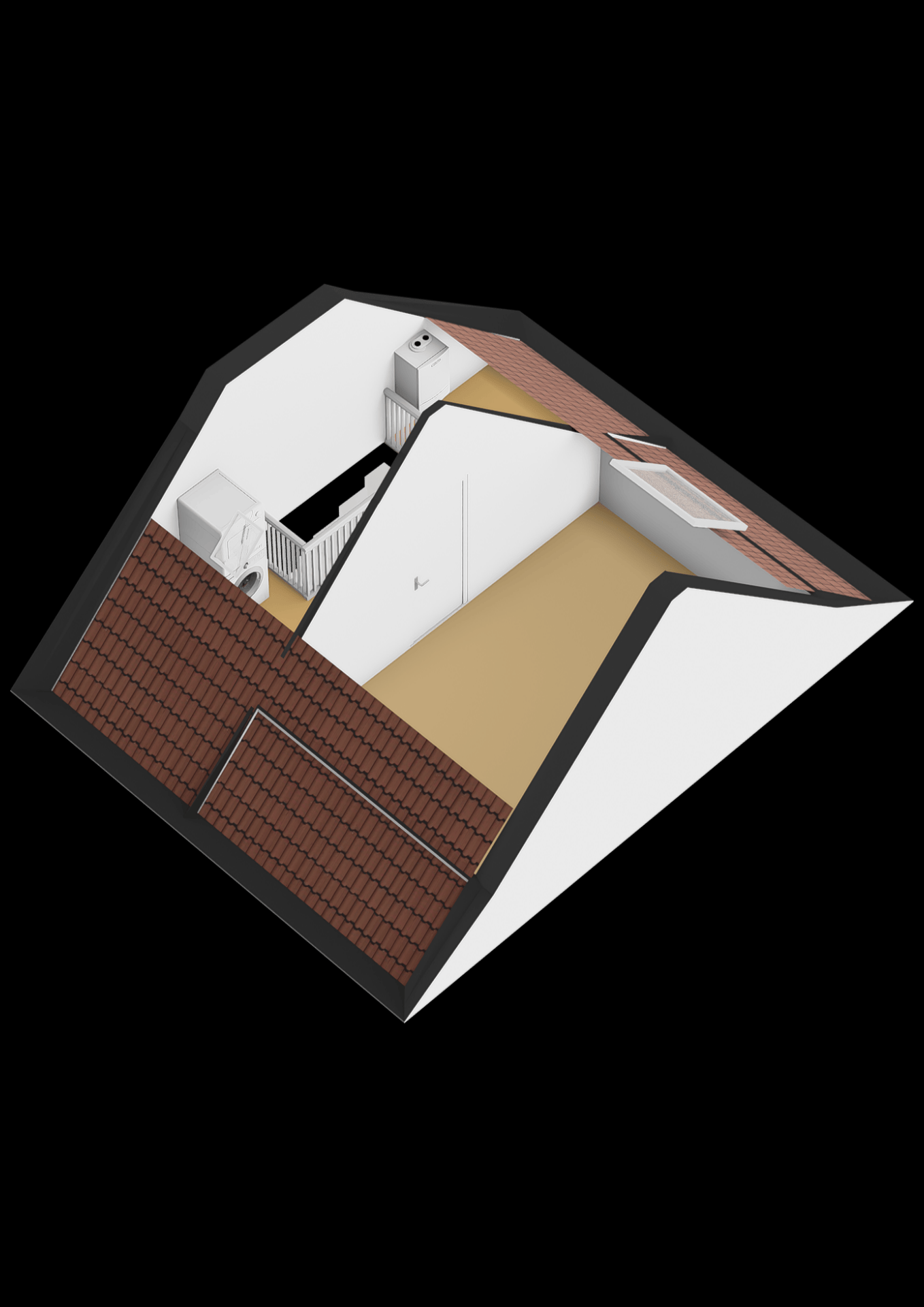 Overloop met vliering en bergruimte, opstelplaats voor de wasmachine, droger en de CV-combiketel; ruime 4e slaapkamer met dakvenster.