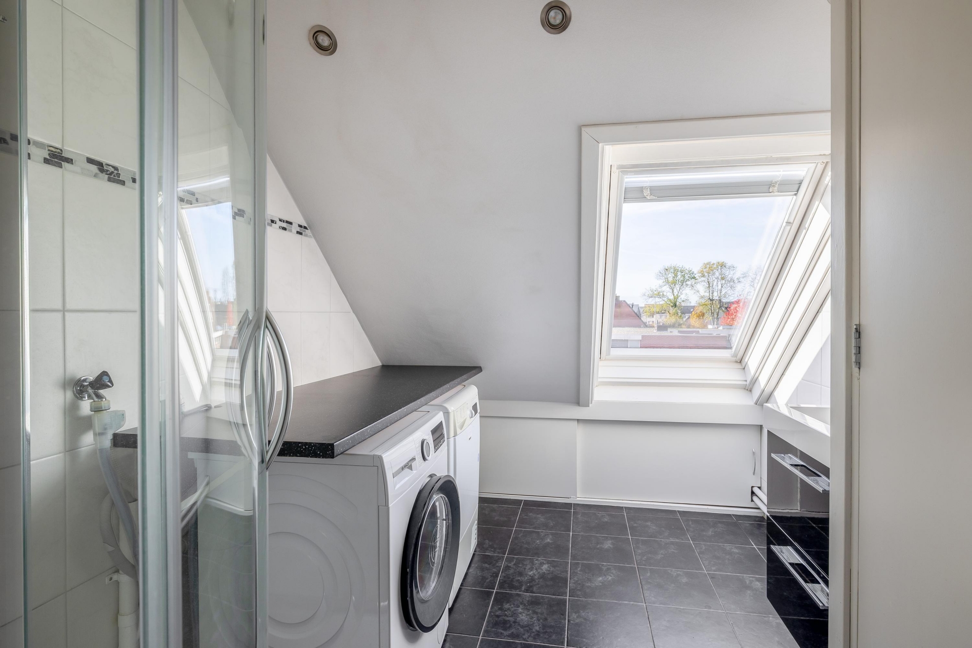 Overloop met toegang tot de vierde slaapkamer met dakvenster en de vijfde slaapkamer, eveneens voorzien van 2 dakvensters. Vanuit deze kamer is er toegang tot de vide en de ruime bergzolder, bereikbaar via een vaste trap.