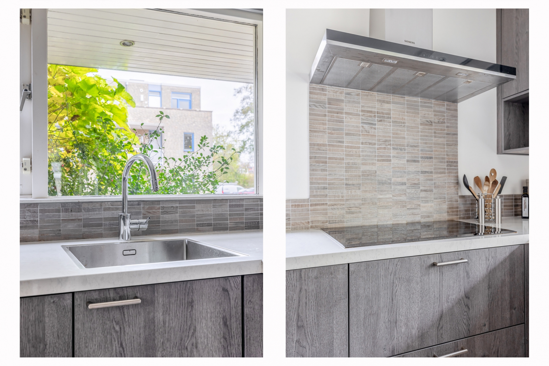 Entree via de verzorgde voortuin. Hal met meterkast en toiletruimte met fonteintje. De sfeervolle doorzonwoonkamer beschikt over een verlaagd plafond met inbouwspots en een grote schuifpui naar de zonnige achtertuin. Aan de voorzijde bevindt zich de moderne open keuken is voorzien van diverse Siemens studio line inbouwapparatuur, waaronder een koel-/vriescombinatie, stoomoven, combi-oven, vaatwasser, inductiekookplaat en afzuigkap. De keuken beschikt tevens over een praktisch bar-gedeelte.