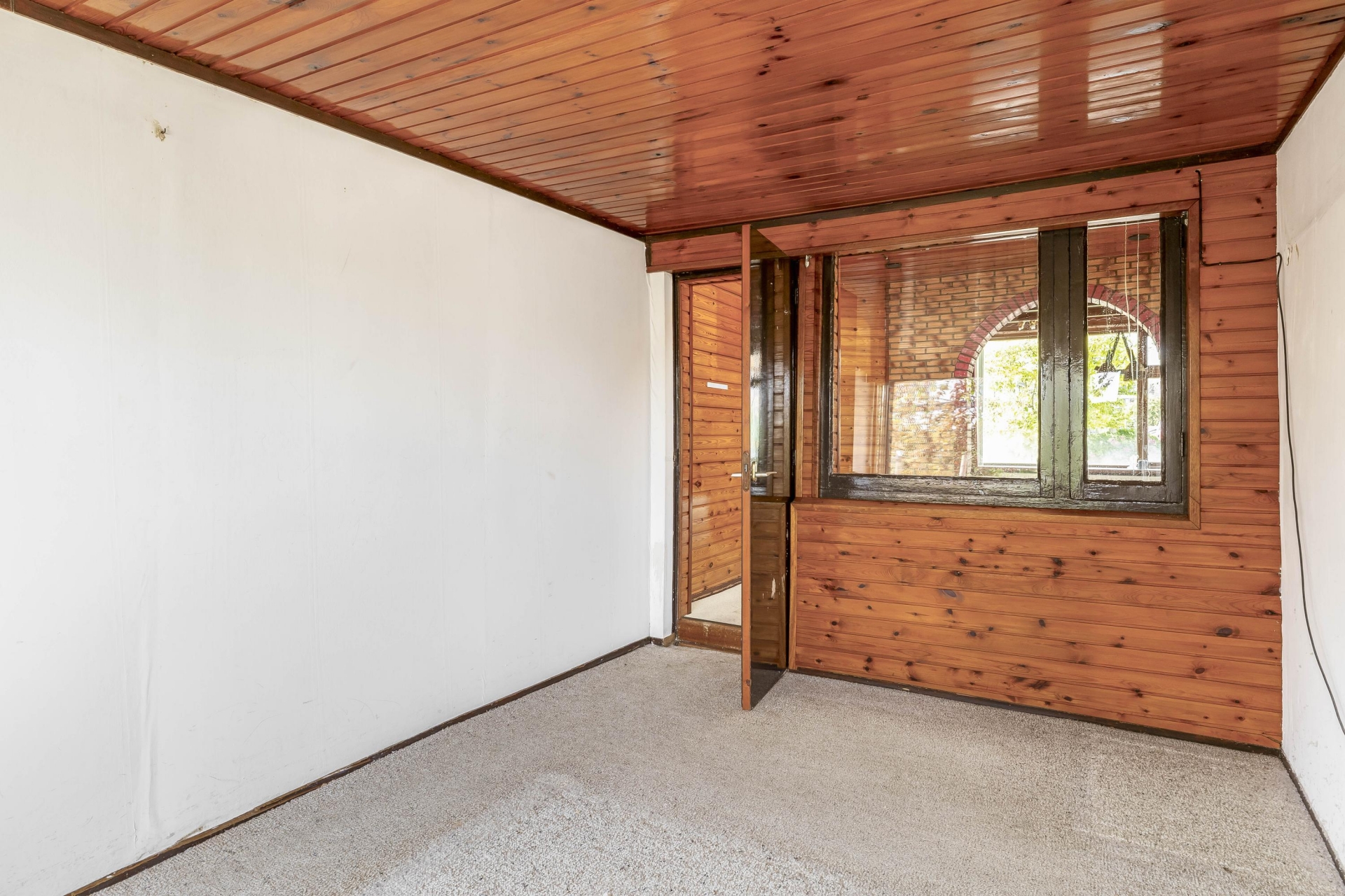De woonkamer en de dichte keuken liggen aan de voorzijde van de woning. Verder zijn er op de begane grond een slaapkamer en een eenvoudige badkamer en een separaat toilet. Op de eerste verdieping is nog een slaapkamer. De indeling is basic en nagenoeg alles moet worden aangepakt: van dak tot elektra, sanitair en afwerking. Dit is een woning voor de échte aanpakker. Maar wie bereid is te investeren, creëert hier wél een royaal en halfvrijstaand (t)huis op een prachtige kavel.
