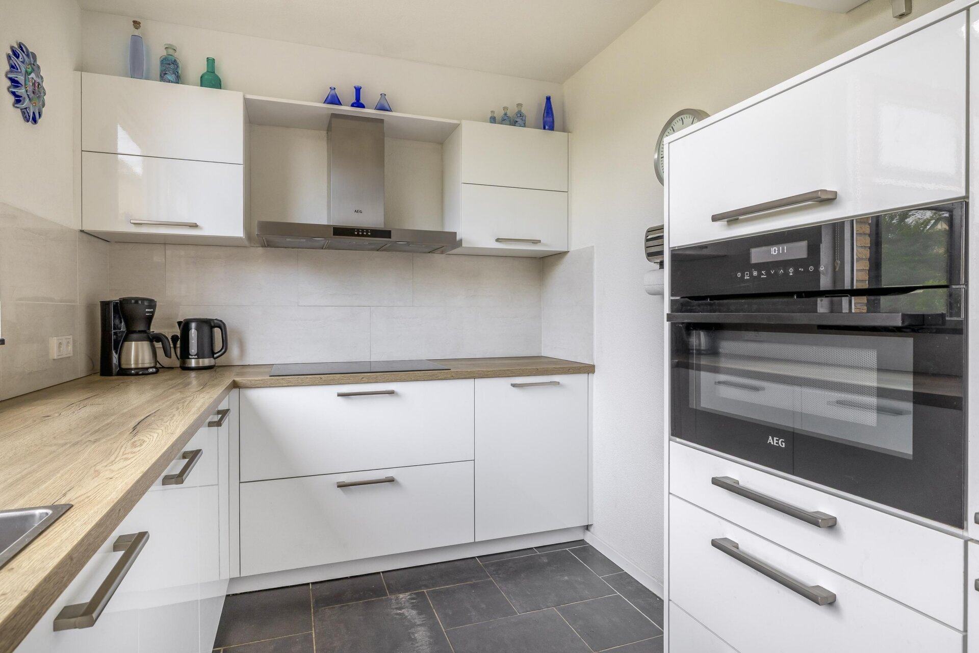 De woonkamer is verrassend ruim en licht dankzij de ligging en grote ramen. Vanuit de zithoek heb je een mooi uitzicht over de rustige wijk. De allesbrander maakt de woonkamer nog extra sfeervol. De eethoek sluit direct aan op de halfopen keuken, waardoor je altijd in contact blijft met je gezelschap. De moderne keuken is vernieuwd in 2021 en is praktisch ingedeeld, voorzien van alle benodigde inbouwapparatuur en van veel opbergruimte, zodat koken hier een plezier is.