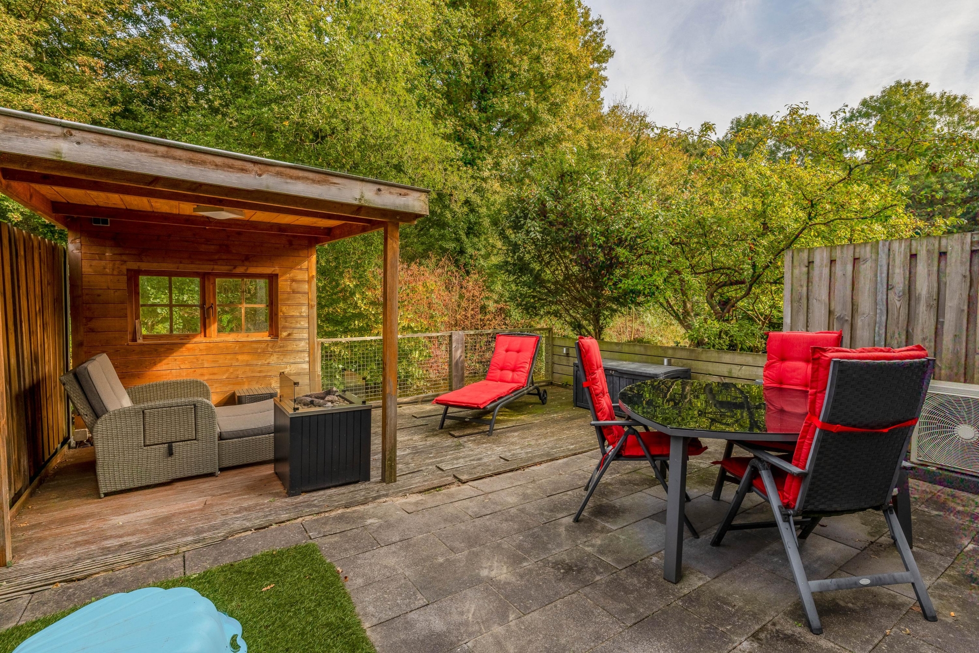 Achter de woning is een heerlijke tuin te vinden, welke op het oosten gesitueerd is. De tuin is gelegen aan het water en biedt een waanzinnig uitzicht over het Schollebos. Hierdoor heb je een ultiem vakantiegevoel het hele jaar door. Door de houten overkapping kan er ook met minder weer van de tuin genoten worden. Via een voetpad sta je binnen 2 minuten in het Schollebos. Hier kan je heerlijk genieten van de natuur en alle rust. Het Schollebos is een prachtig stadsbos dat bekend staat om zijn recreatiemogelijkheden, zoals wandelen, fietsen en picknicken, met diverse paden die door het groene landschap slingeren.