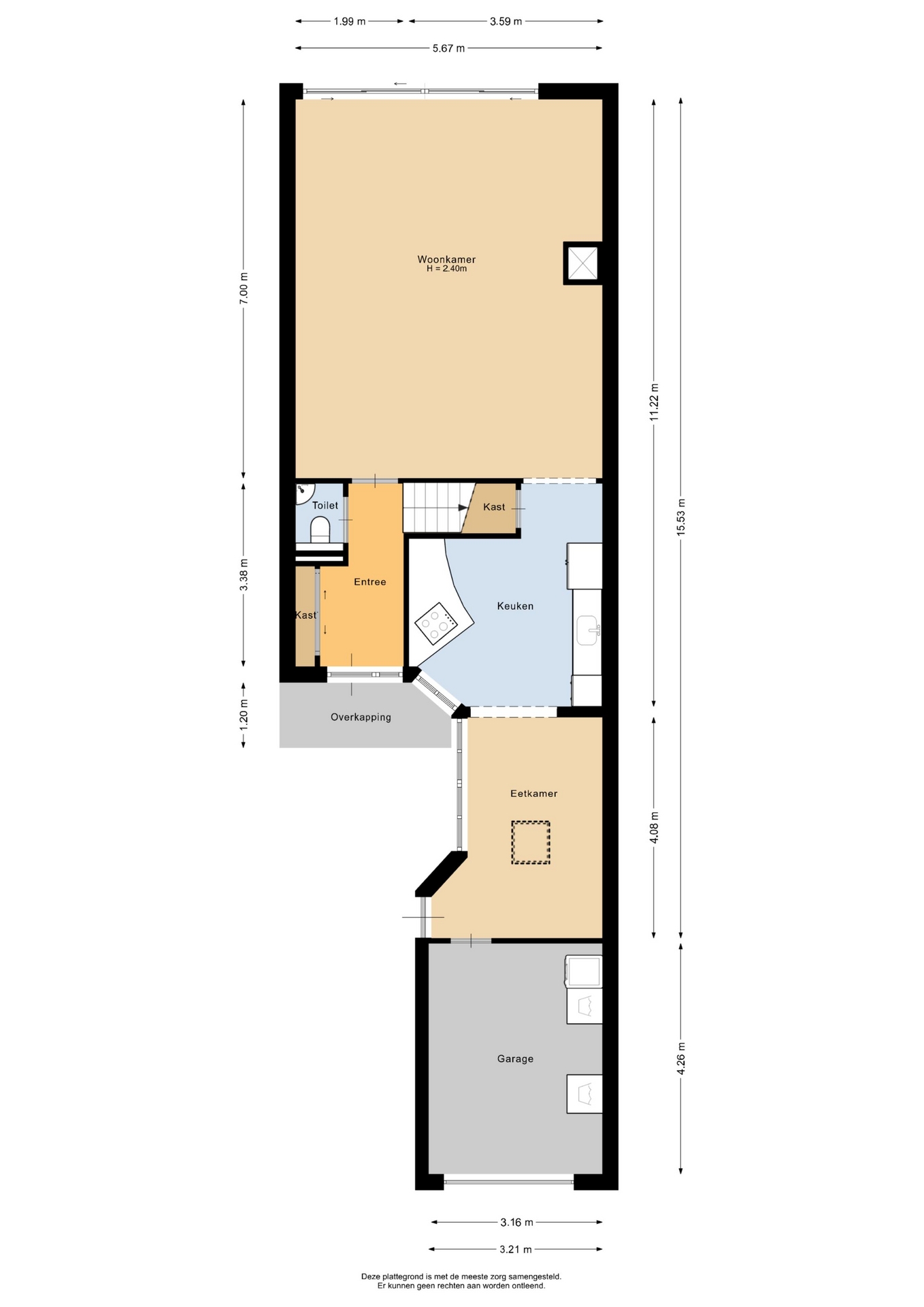 “Deze informatie is door ons met de nodige zorgvuldigheid samengesteld. Onzerzijds wordt echter geen enkele aansprakelijkheid aanvaard voor enige onvolledigheid, onjuistheid of anderszins, dan wel de gevolgen daarvan. Alle opgegeven maten en oppervlakten zijn indicatief.”