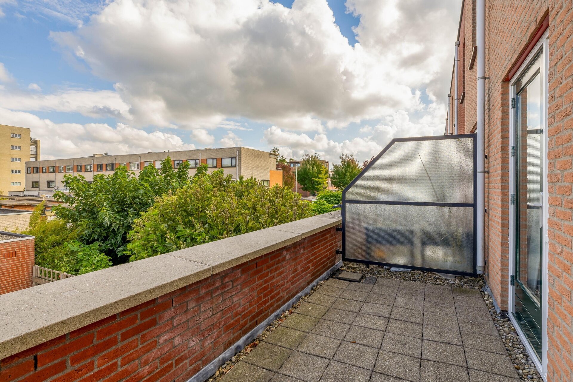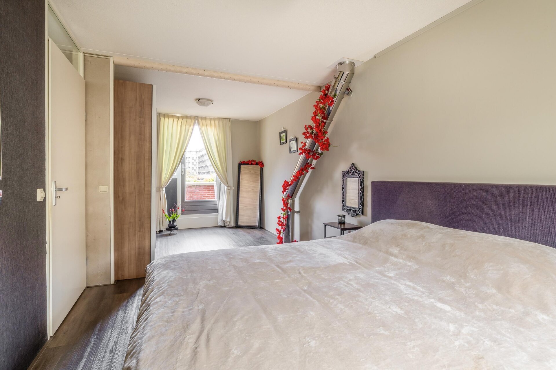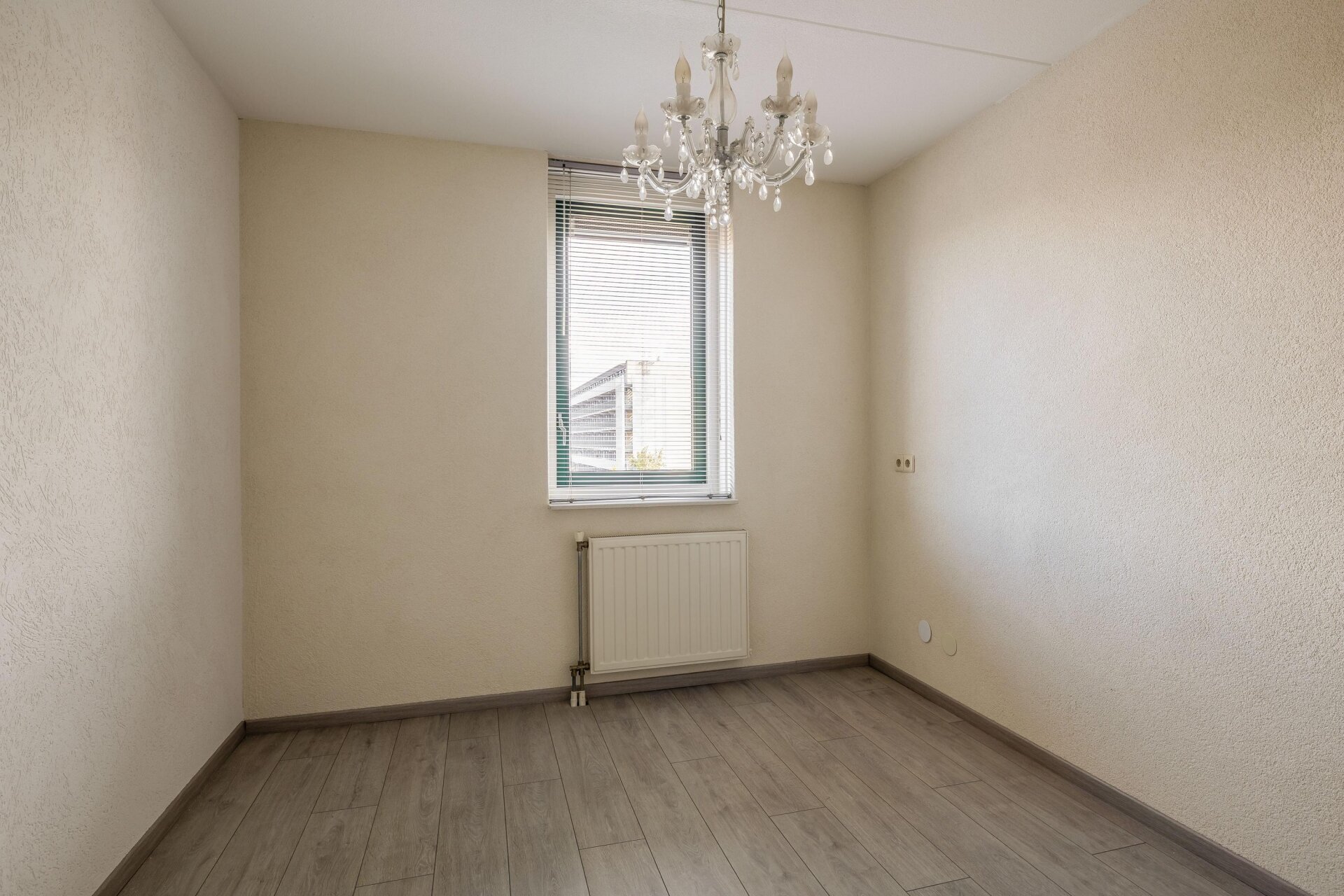 Op de eerste verdieping zijn nu twee kamers ingericht, waarvan de grote slaapkamer toegang heeft naar het ruime dakterras. Deze verdieping is eenvoudig weer terug te brengen naar de oorspronkelijke indeling met drie (slaap)kamers. De badkamer is functioneel ingedeeld met een ligbad, aparte douche, wastafel en een raam voor natuurlijke ventilatie.