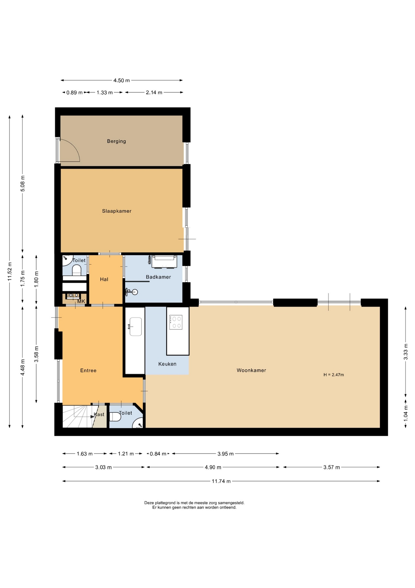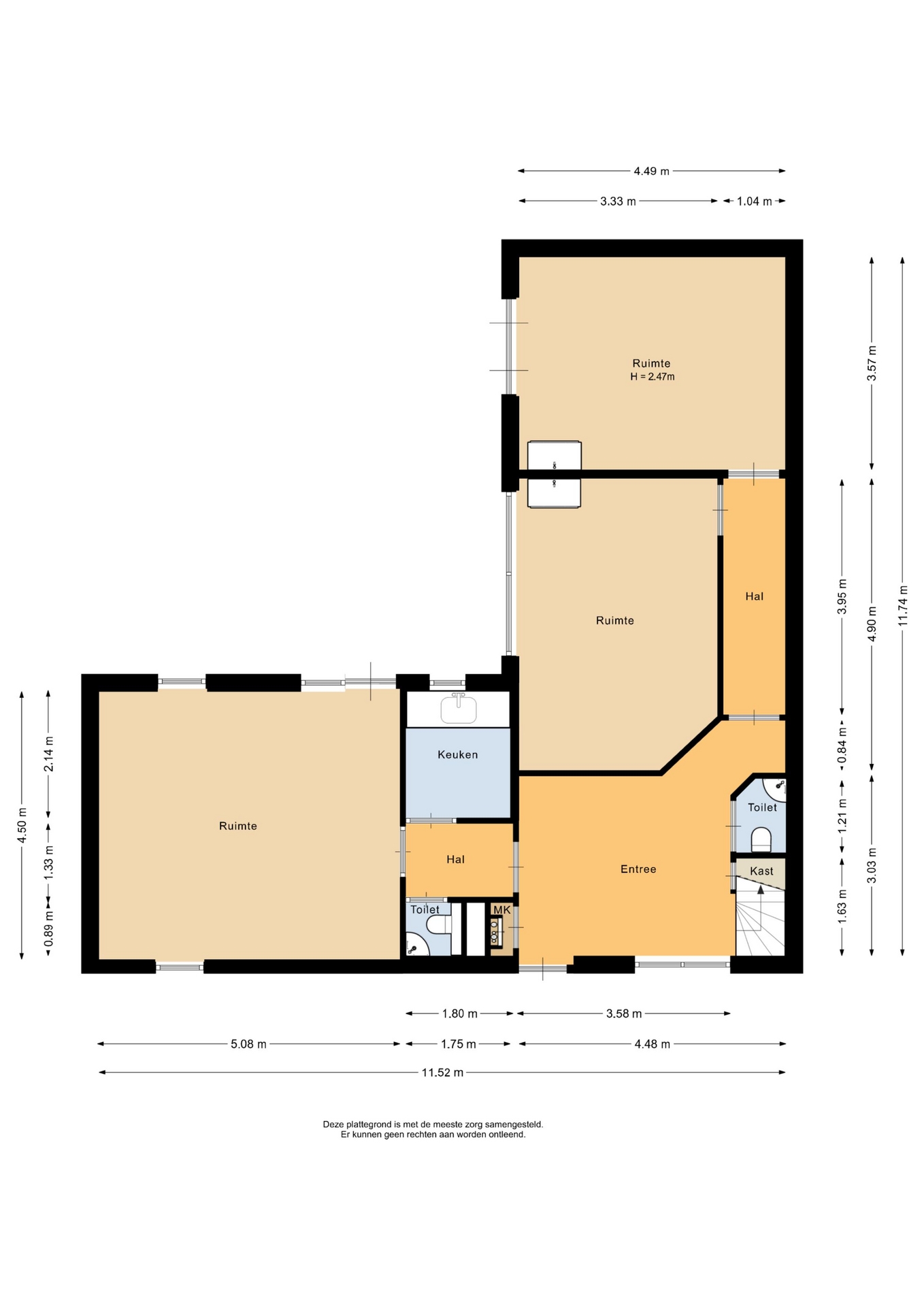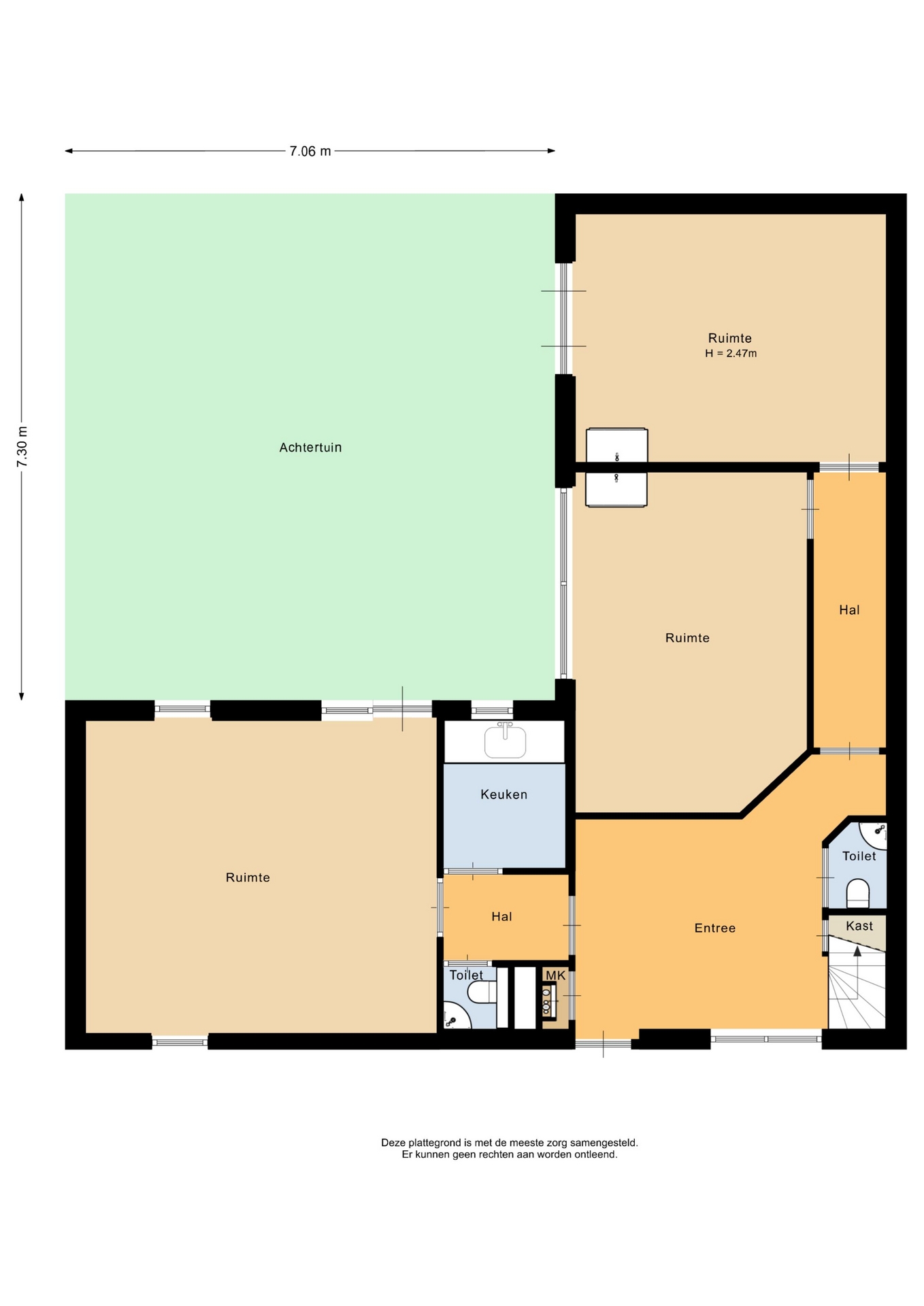 “Deze informatie is door ons met de nodige zorgvuldigheid samengesteld. Onzerzijds wordt echter geen enkele aansprakelijkheid aanvaard voor enige onvolledigheid, onjuistheid of anderszins, dan wel de gevolgen daarvan. Alle opgegeven maten en oppervlakten zijn indicatief.”