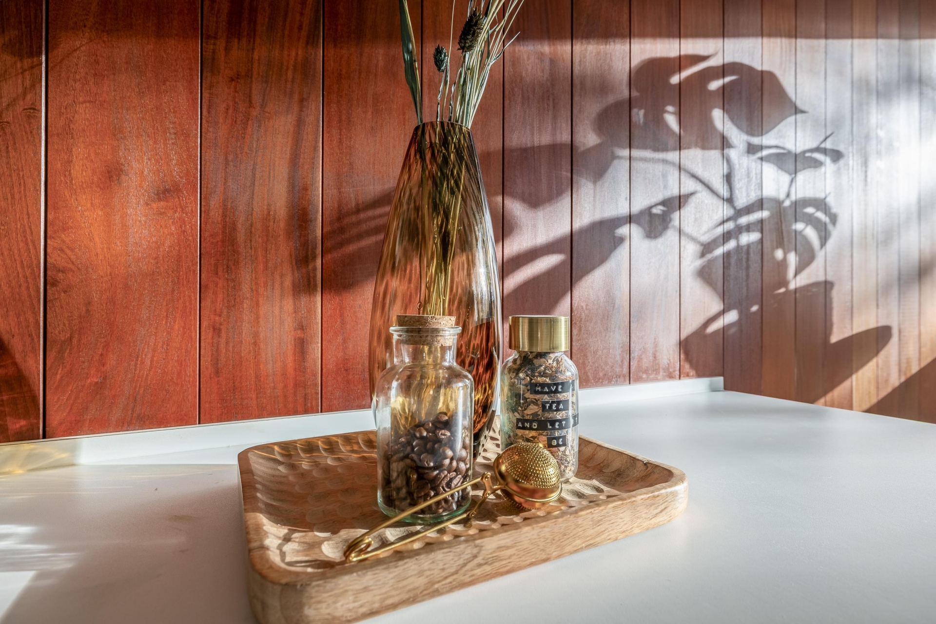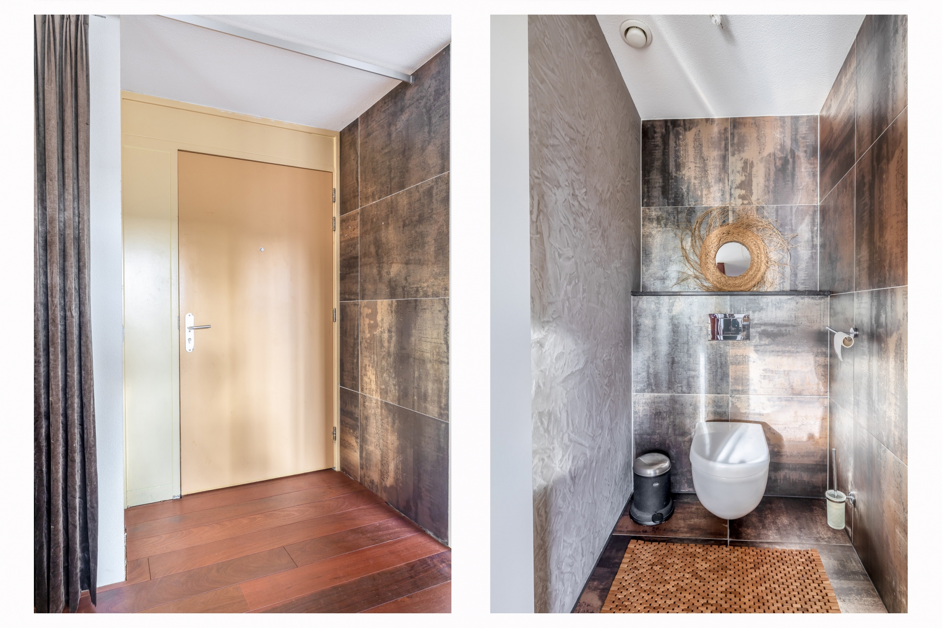 Zodra je binnenkomt, valt de hoogwaardige afwerking direct op. De hardhouten vloer loopt als een warme basis door het gehele appartement. De binnendeuren (slechts 2) zijn taats gescharnierd en voorzien van verzonken grepen, een stijlvol detail dat zorgt voor een strakke en luxe uitstraling. De ruime living biedt volop mogelijkheden voor een gezellige zit- en eethoek en wordt van nature royaal verlicht door de vele ramen aan meerdere zijden. Hier ervaar je echt het loftgevoel: open, licht en ruim.