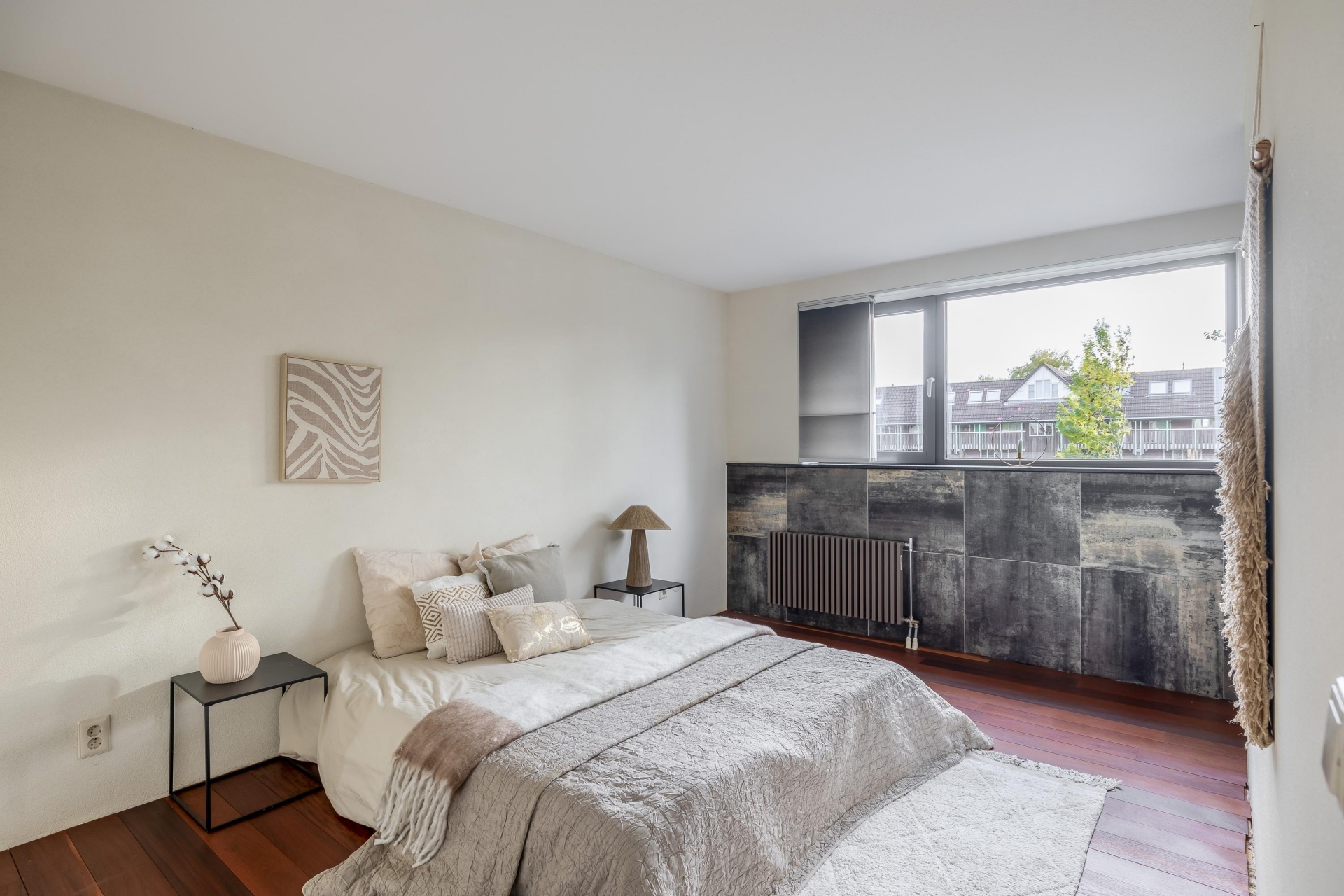 Met een woonoppervlakte van 102 m² heb je hier alle ruimte om comfortabel te wonen. Het appartement beschikt over één ruime slaapkamer, die zich uitstekend leent als master bedroom met een rustige uitstraling. De kamer is voorzien van luxe inbouwmaatkasten met geïntegreerde verlichting, perfect afgestemd op de strakke afwerking van de rest van het huis. Je kleding, schoenen en accessoires berg je hier stijlvol én overzichtelijk op.