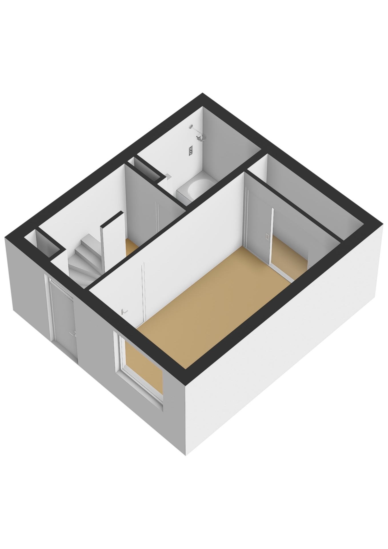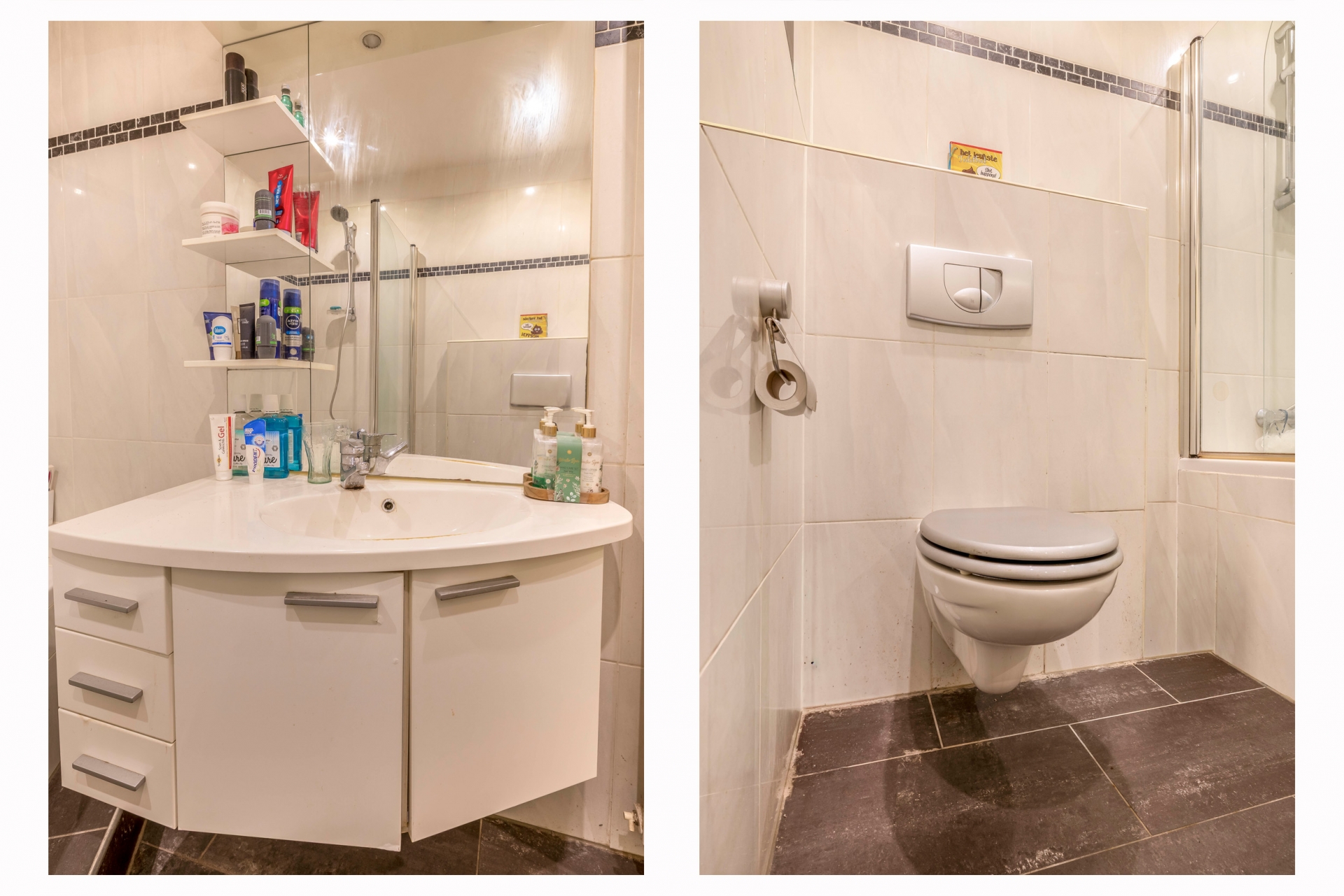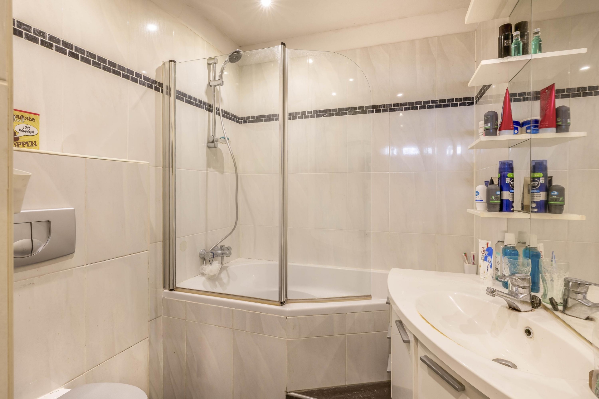 De 85 m² woonoppervlakte is verdeeld over 2 woonlagen. Op de begane grond is een ruime slaapkamer te vinden met een ruime inbouwkast, de badkamer is uitgerust met een ligbad met douche, een wastafelmeubel en een toilet. Verder is er ook nog een trapkast.