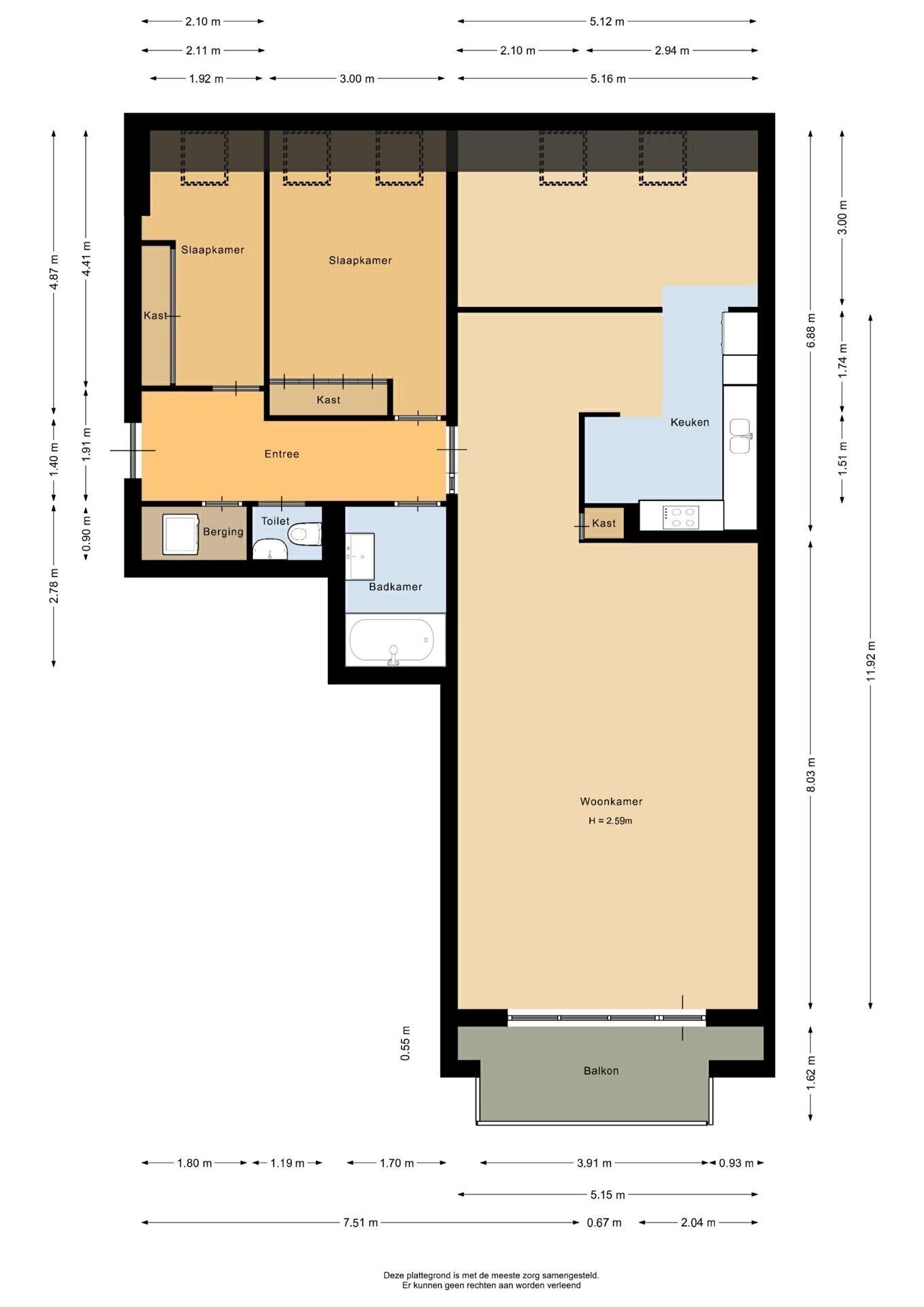 “Deze informatie is door ons met de nodige zorgvuldigheid samengesteld. Onzerzijds wordt echter geen enkele aansprakelijkheid aanvaard voor enige onvolledigheid, onjuistheid of anderszins, dan wel de gevolgen daarvan. Alle opgegeven maten en oppervlakten zijn indicatief.”