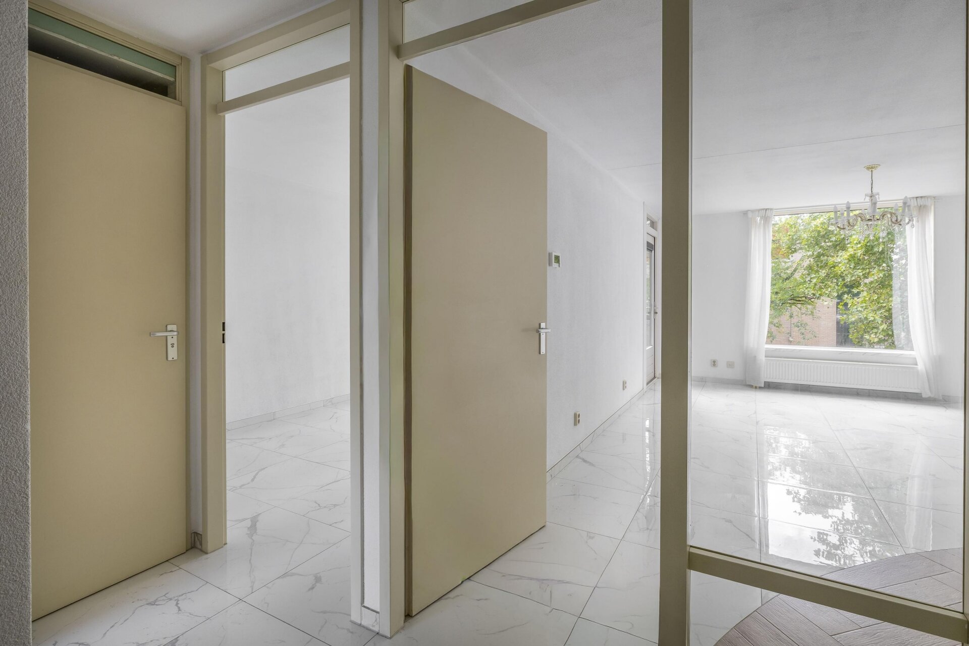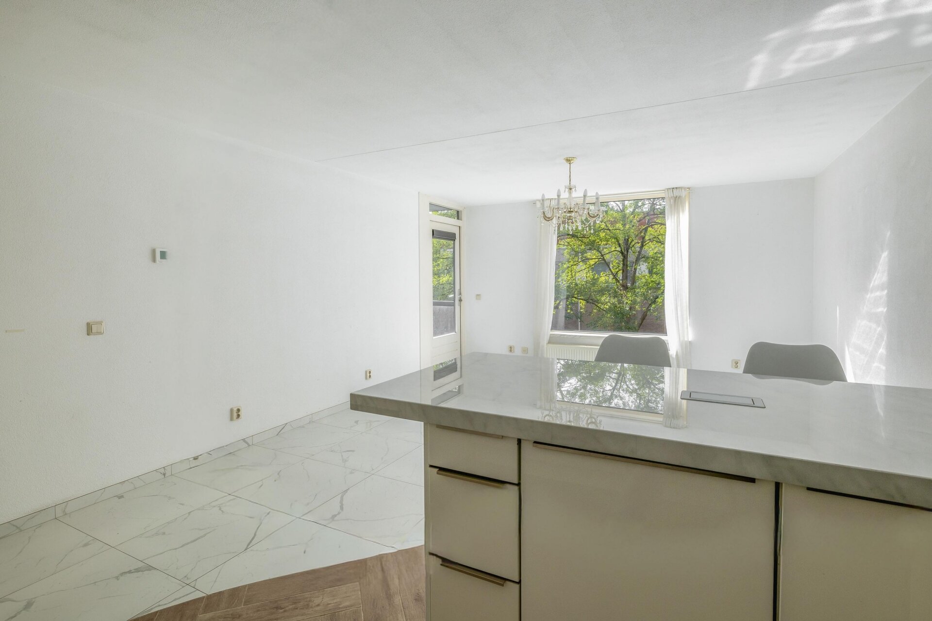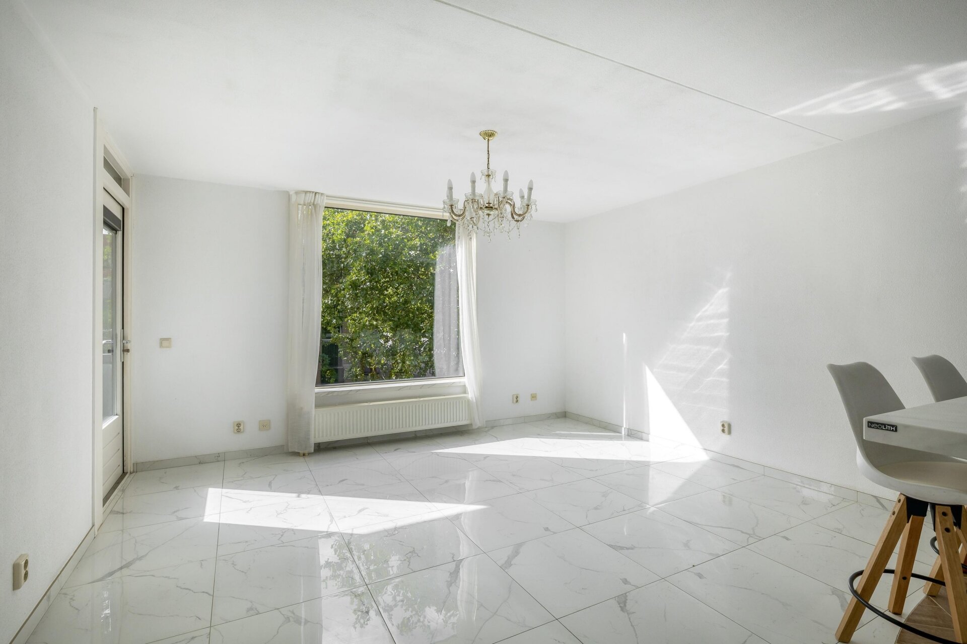 Zodra je binnenkomt merk je het meteen: dit appartement is met zorg bewoond en netjes afgewerkt. De ruime woonkamer met grote ramen zorgt voor veel natuurlijk lichtinval en directe toegang tot het zonnige balkon op het zuiden. De moderne tegelvloer loopt drempelloos door het hele appartement, wat zorgt voor een rustige en eigentijdse uitstraling. Dankzij de ligging op de tweede verdieping zit je net hoog genoeg voor privacy, maar nog steeds verbonden met de levendigheid van de buurt.