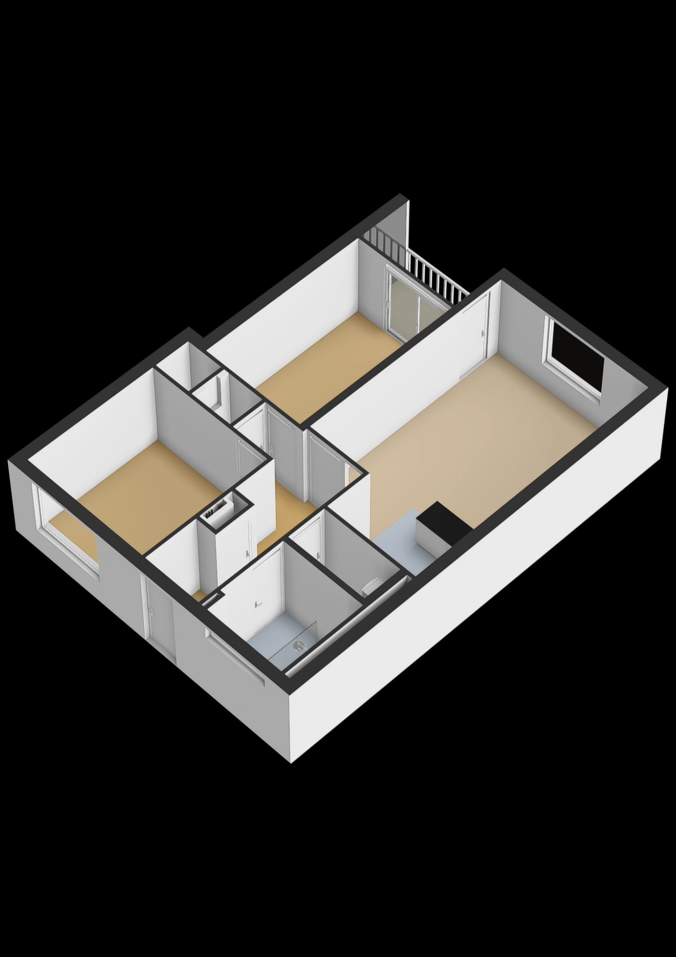 De twee slaapkamers zijn verrassend ruim en praktisch ingedeeld, met de hoofdslaapkamer aan de achterzijde en directe toegang tot het balkon. Ideaal als je op warme dagen even de deuren open wilt zetten. De tweede kamer is perfect als logeerkamer, werkplek of hobbyruimte. De badkamer is keurig en compleet met een inloopdouche en wastafel. Daarnaast is er een aparte ruimte voor je wasmachine en extra berging, handig én overzichtelijk.