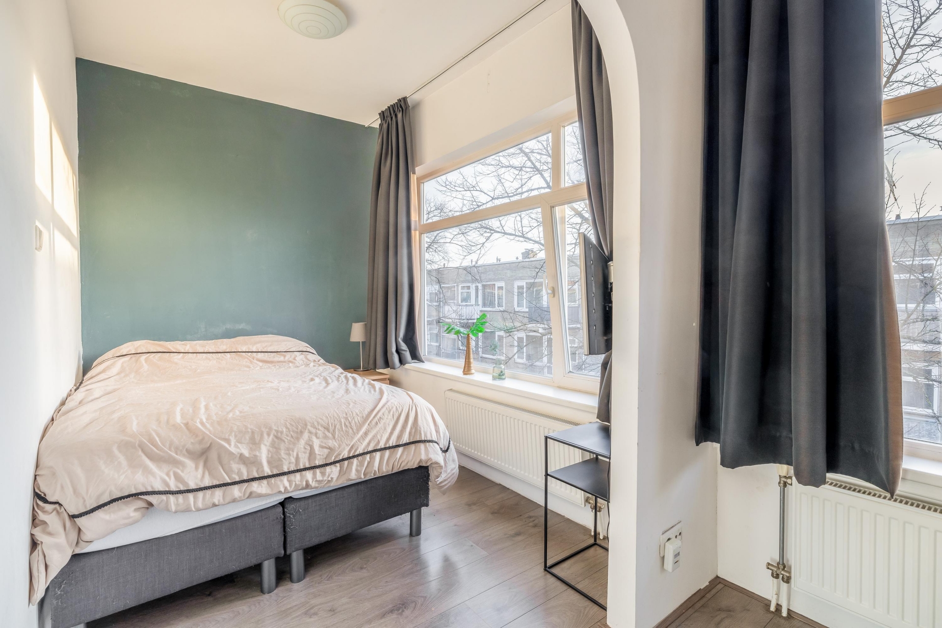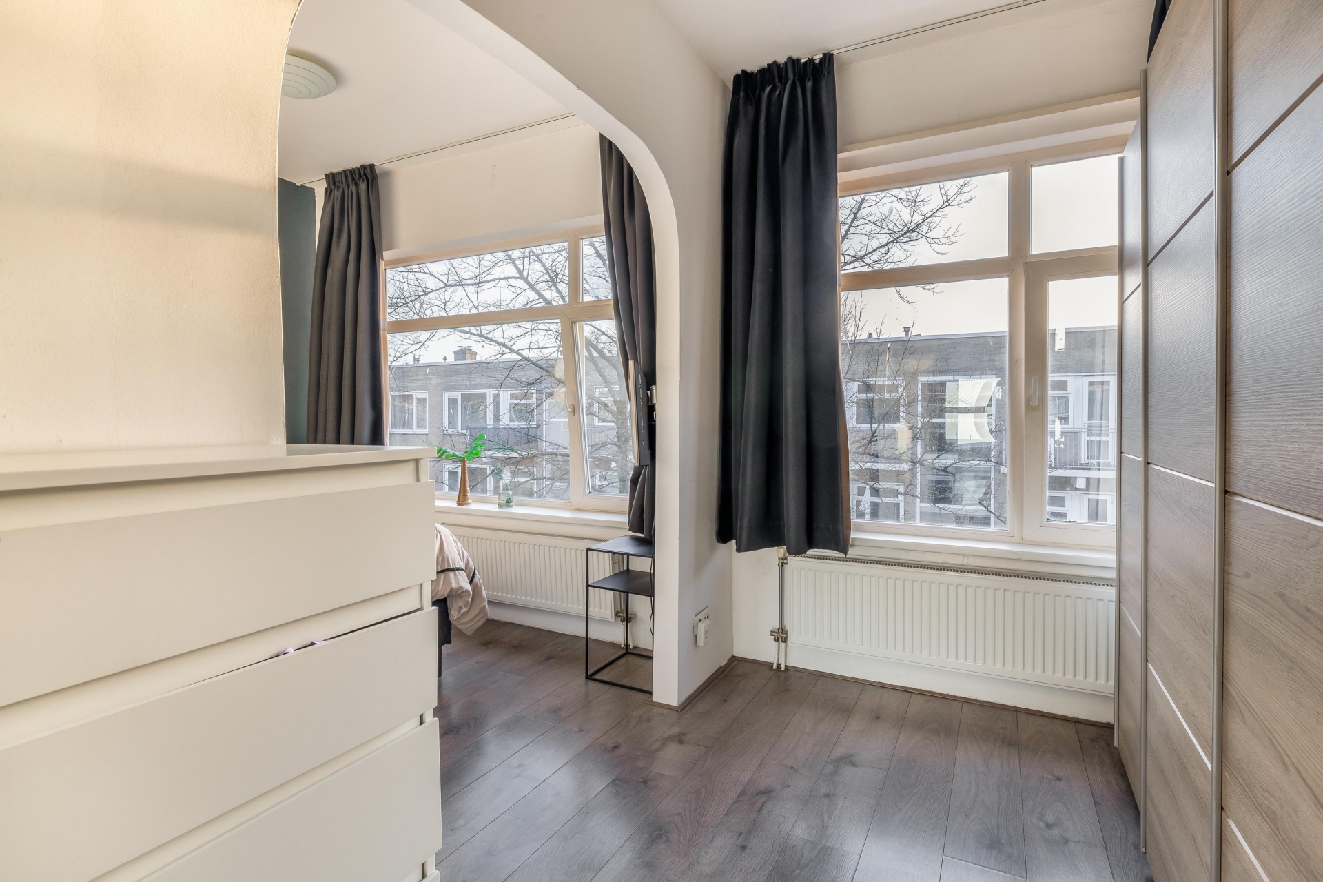 Beide slaapkamers zijn van goed formaat. De grootste kamer is perfect als master bedroom en heeft uitzicht op de straat. De tweede slaapkamer is ideaal als thuiskantoor, logeerkamer of juist een kinderkamer. Ook in deze ruimtes zorgen de grote ramen voor veel lichtinval.