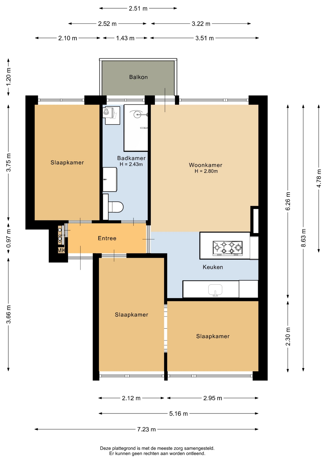 “Deze informatie is door ons met de nodige zorgvuldigheid samengesteld. Onzerzijds wordt echter geen enkele aansprakelijkheid aanvaard voor enige onvolledigheid, onjuistheid of anderszins, dan wel de gevolgen daarvan. Alle opgegeven maten en oppervlakten zijn indicatief.”