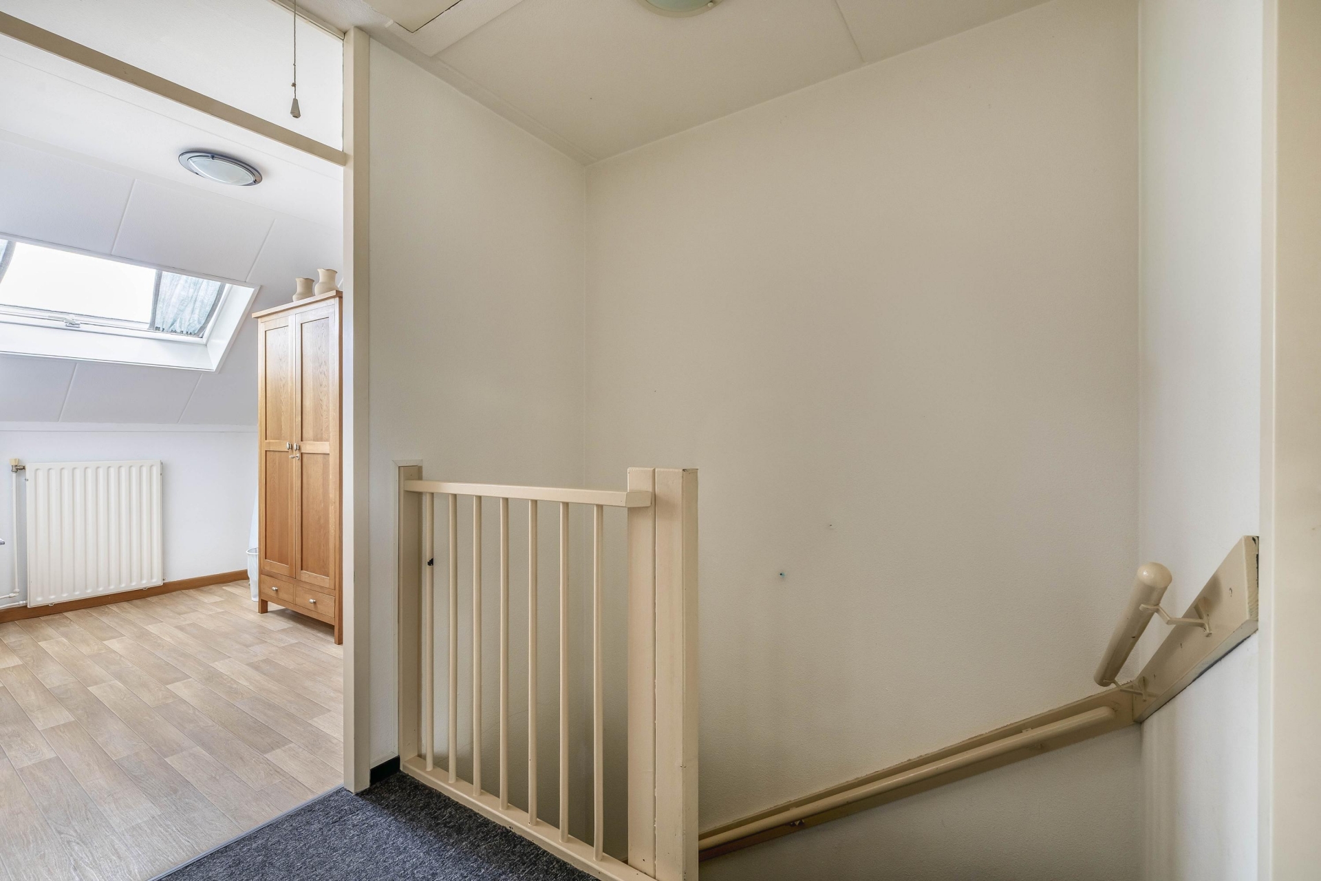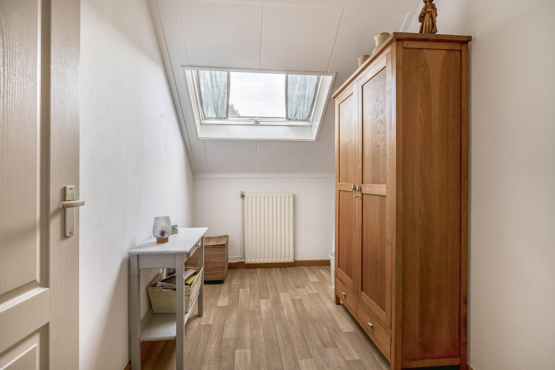 De tweede verdieping bestaat uit een ruime zolder. Deze ruimte is ideaal als bergzolder, maar kan ook prima gebruikt worden als extra kamer, hobbyruimte of werkplek. Dankzij de stahoogte en de indeling heb je hier meer mogelijkheden dan je in eerste instantie zou verwachten.
