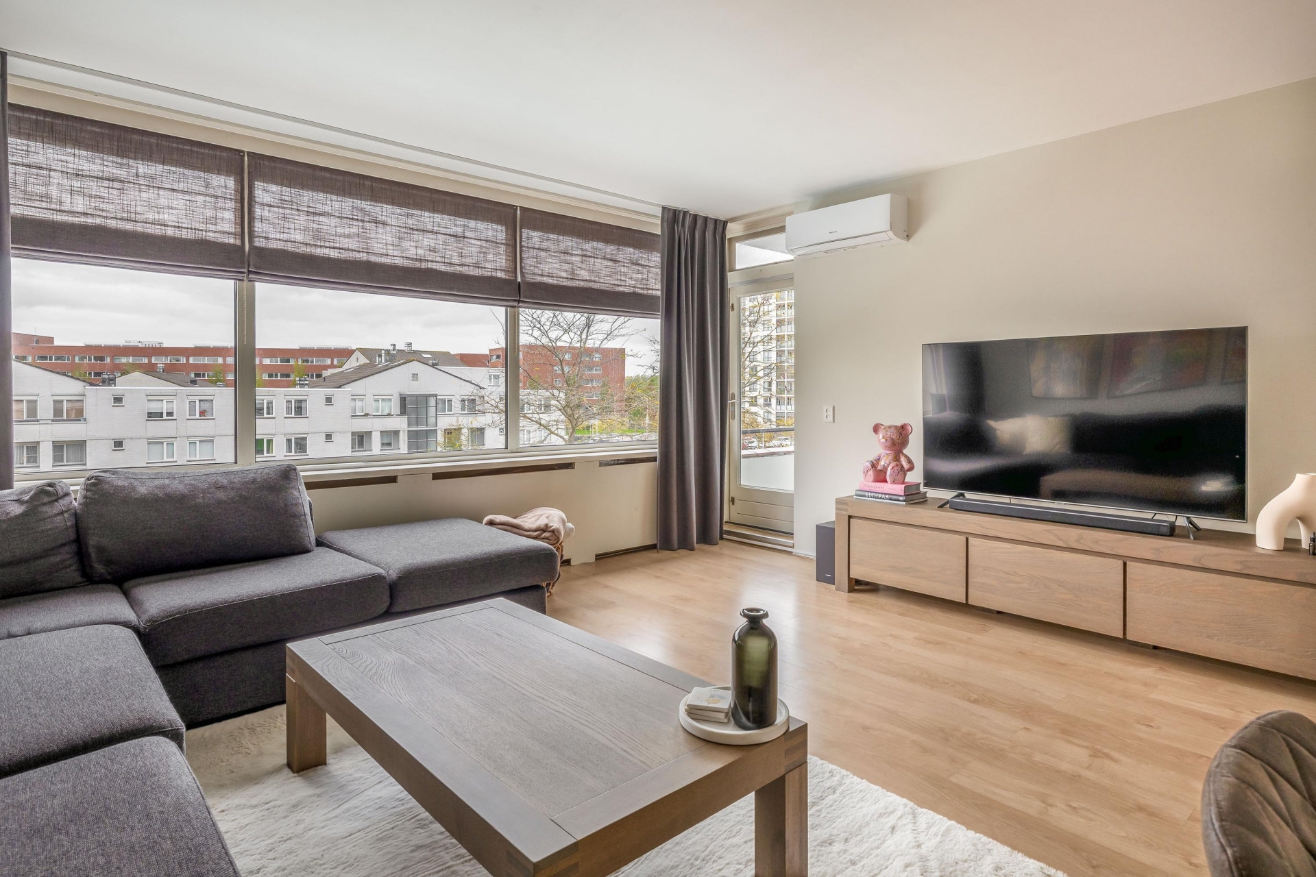 Vervolgens is daar de woonkamer (29m²); een heerlijke lichte ruimte met een kamerbrede raampartij en deur naar het voorgelegen balkon (5m² / zuid west). Dit balkon is voorzien van een elektrisch zonnescherm.