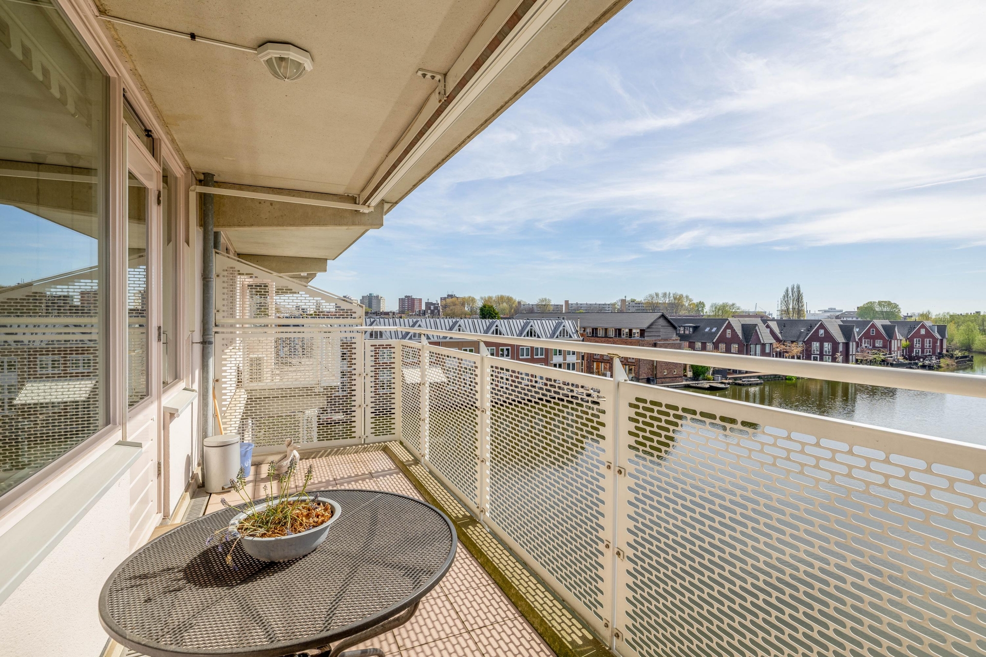 Het balkon is een absolute plus van dit huis. Gelegen op het zuidwesten geniet je hier volop van de middag- en avondzon. Of je nu rustig een kop koffie drinkt in de ochtend of juist aan het einde van de dag nog even buiten zit, dit is een plek waar je graag bent. Het uitzicht over het water en de omliggende bebouwing zorgt voor een levendig maar tegelijkertijd ontspannen beeld. Door de overkapping zit je hier bovendien beschut en comfortabel.