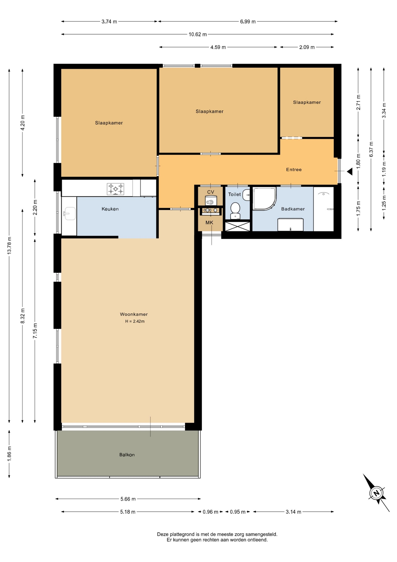 “Deze informatie is door ons met de nodige zorgvuldigheid samengesteld. Onzerzijds wordt echter geen enkele aansprakelijkheid aanvaard voor enige onvolledigheid, onjuistheid of anderszins, dan wel de gevolgen daarvan. Alle opgegeven maten en oppervlakten zijn indicatief.”