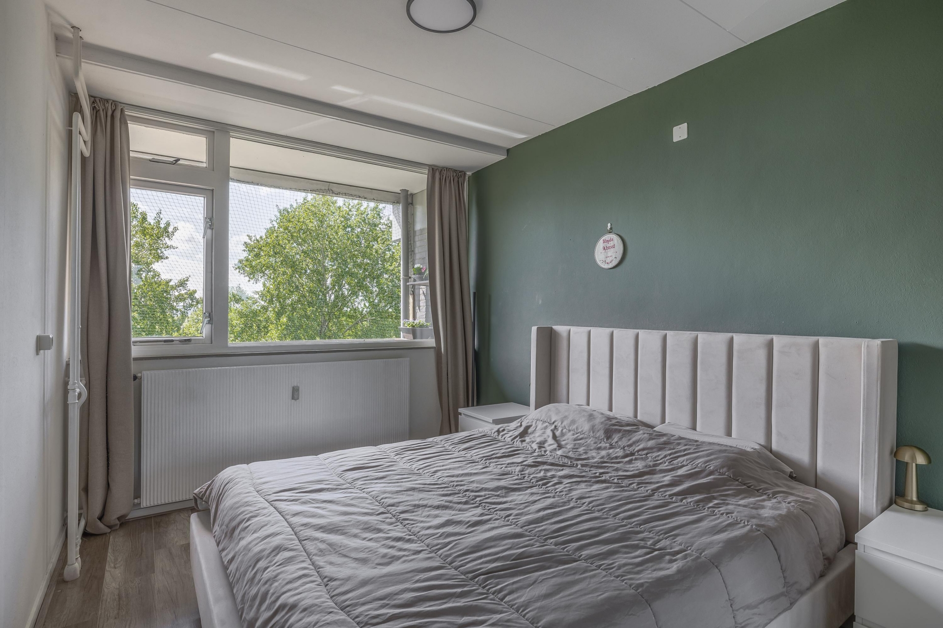 De woonkamer is heerlijk licht dankzij het grote raam en de doorloop naar de naastgelegen vierde (slaap)kamer. Deze is voorzien van een deur naar het balkon. De neutrale afwerking en nette vloer maken het makkelijk om je eigen stijl hier door te voeren. Het balkon ligt op het westen: dat betekent zon in de middag en avond, ideaal voor een ontspannen borrelmoment aan het einde van de dag, met uitzicht op de groene omgeving.