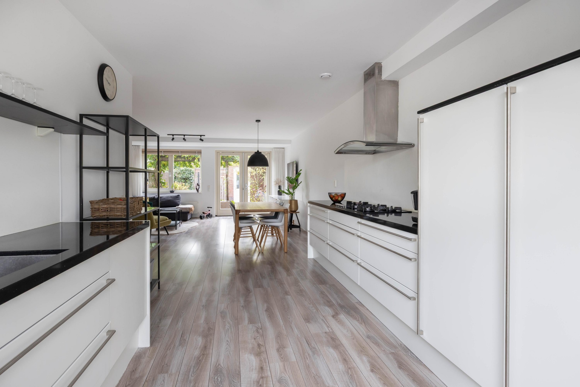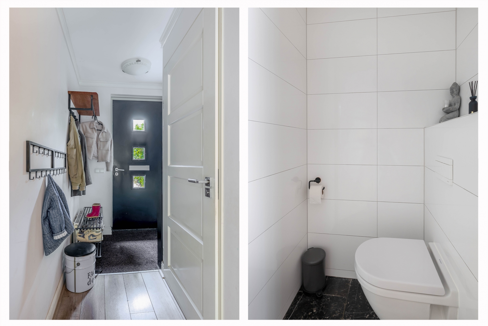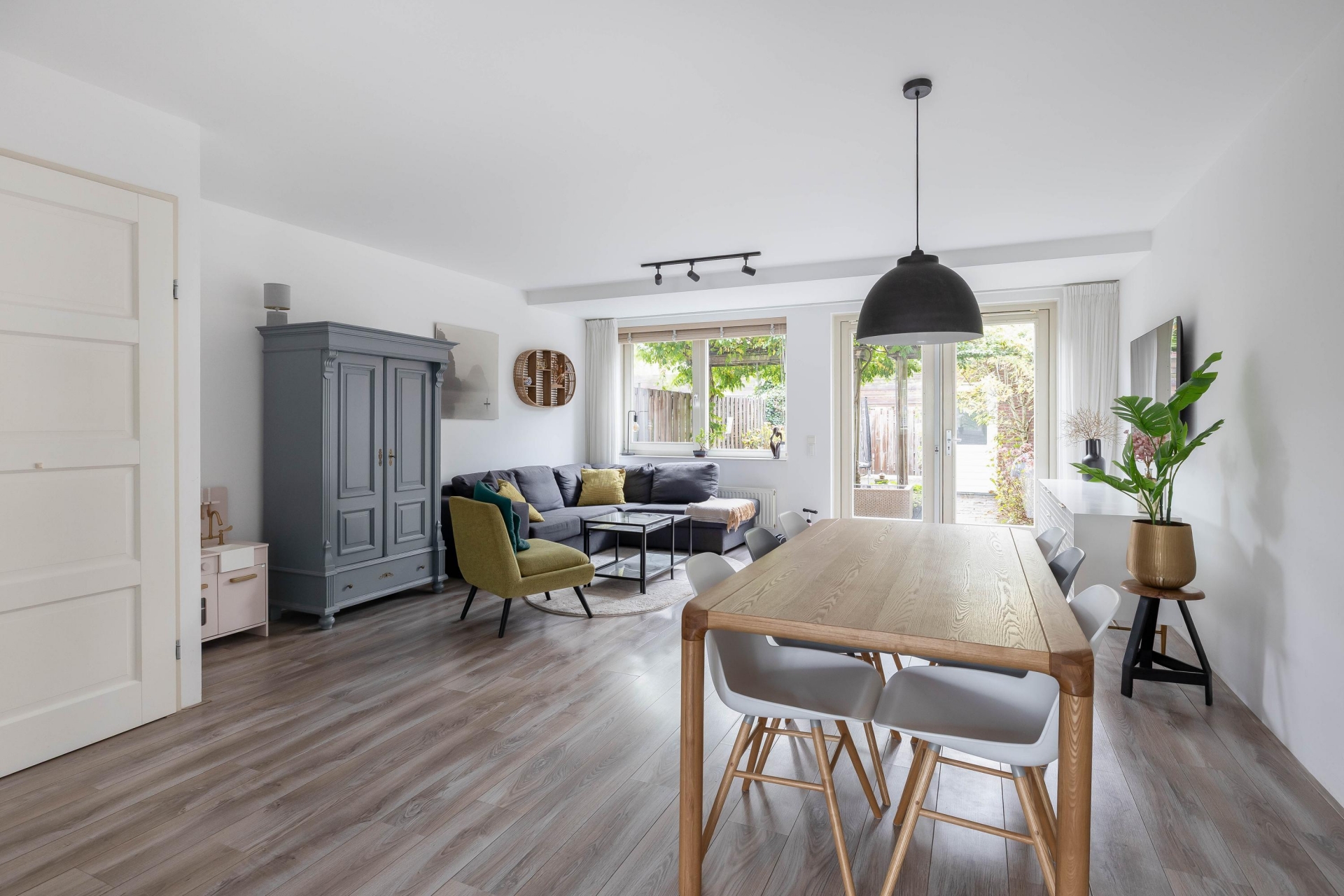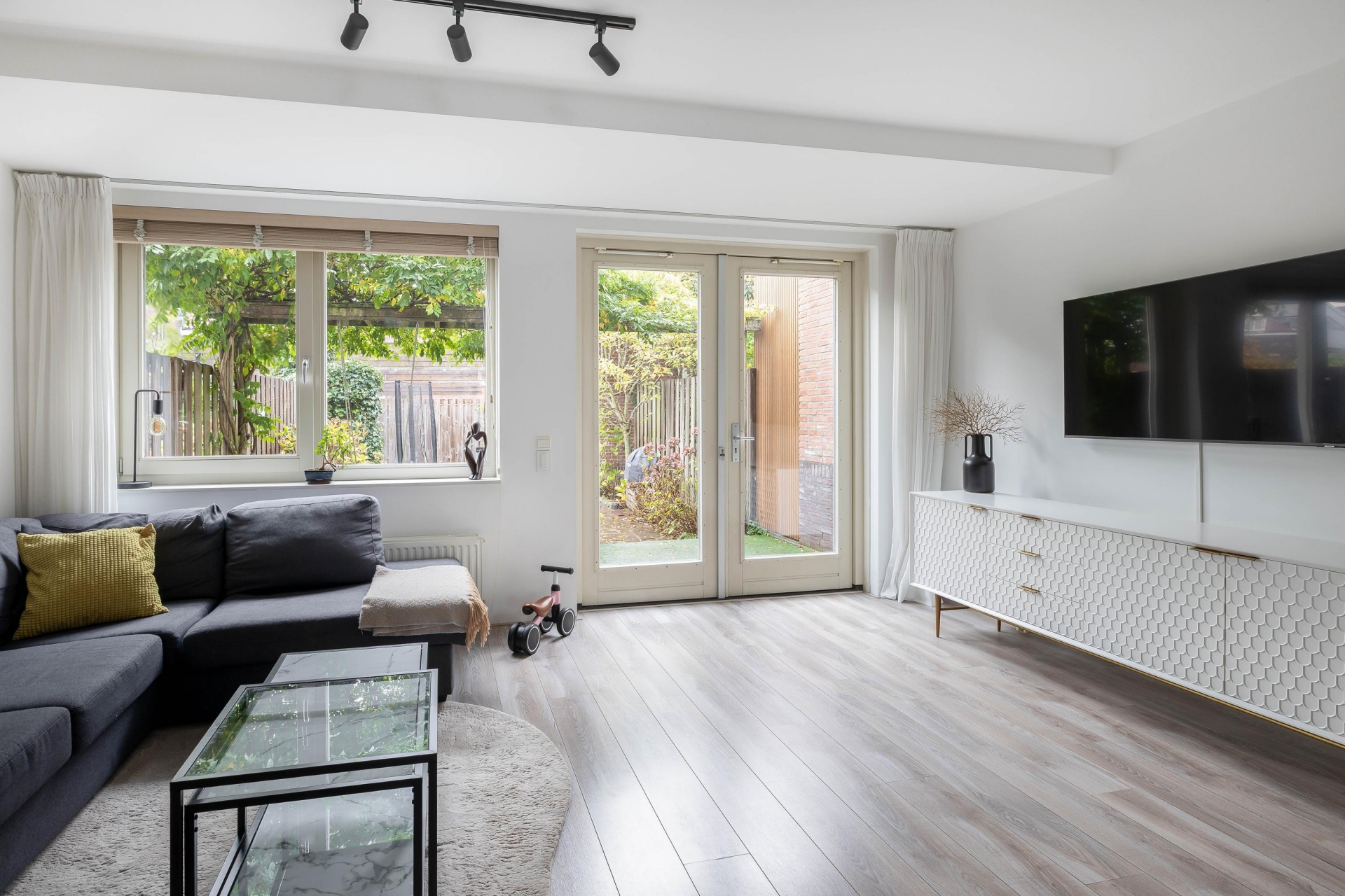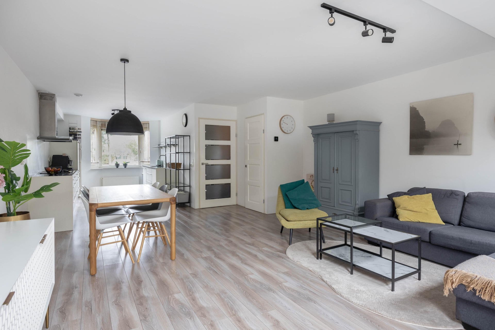 Bij binnenkomst valt direct de lichte en verzorgde uitstraling op. De hal leidt naar de royale woonkamer aan de achterzijde, waar openslaande deuren zorgen voor een fijne verbinding met de tuin. De zithoek is ruim opgezet en dankzij de grote ramen is het hier aangenaam licht.