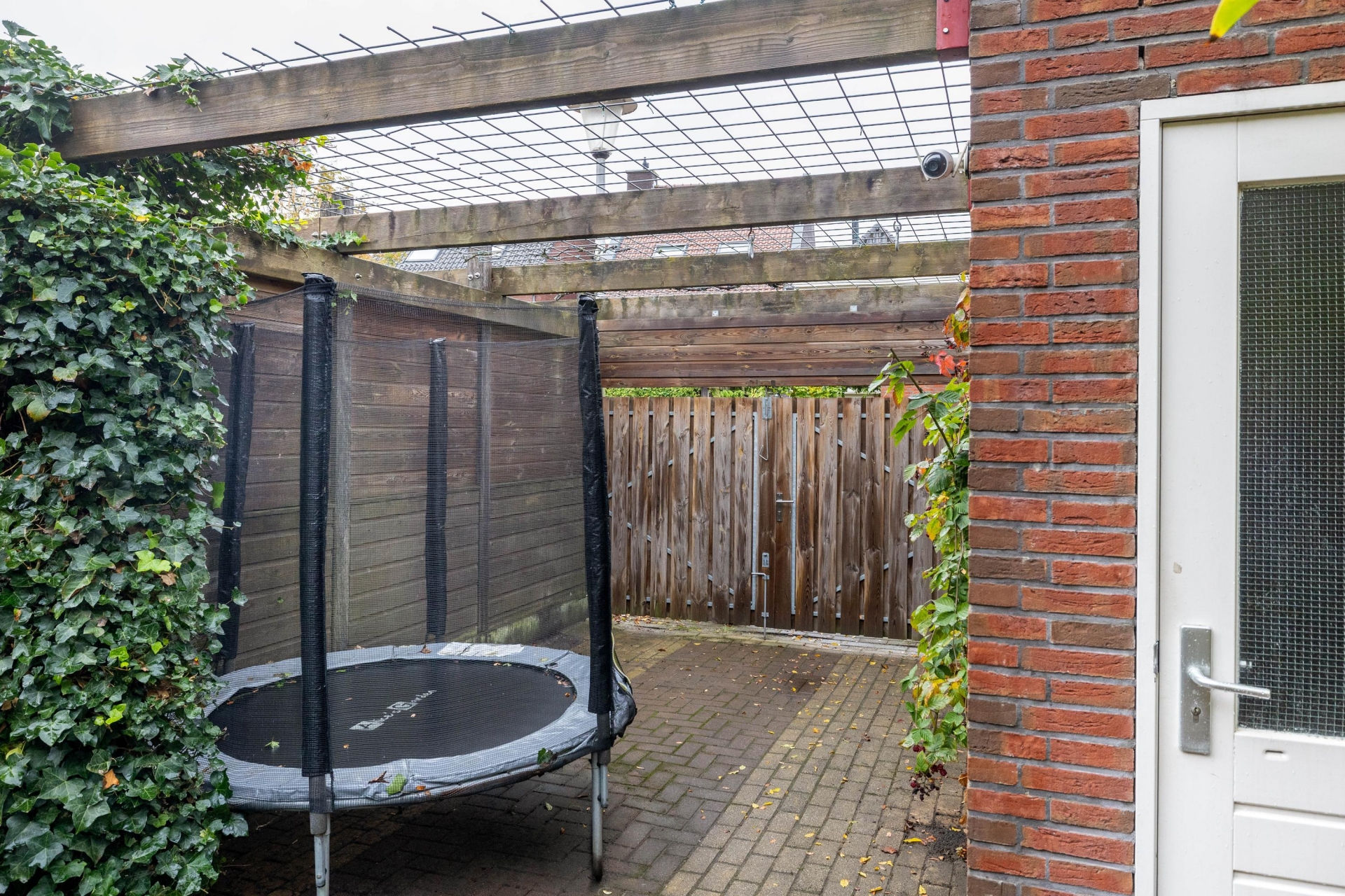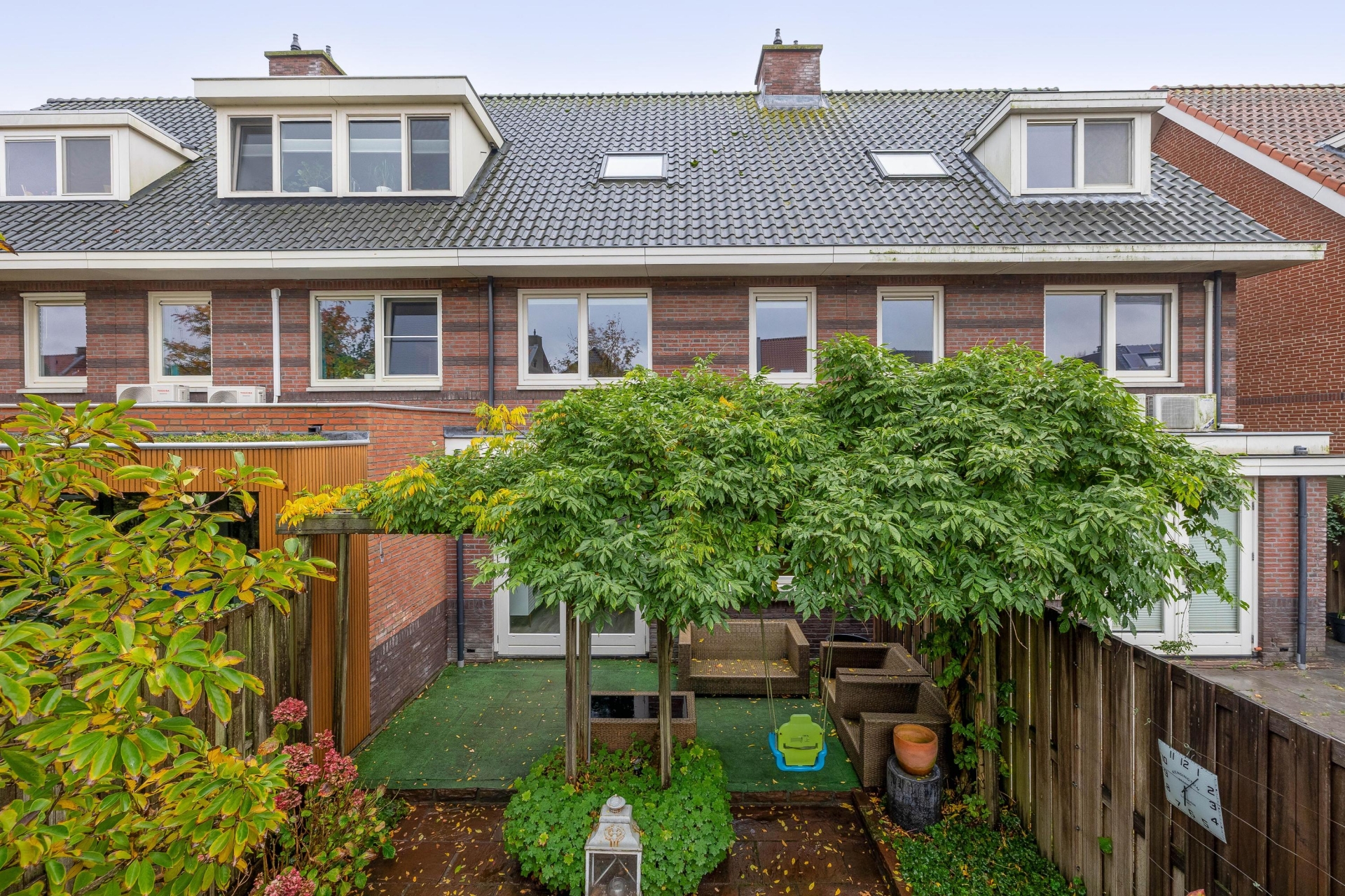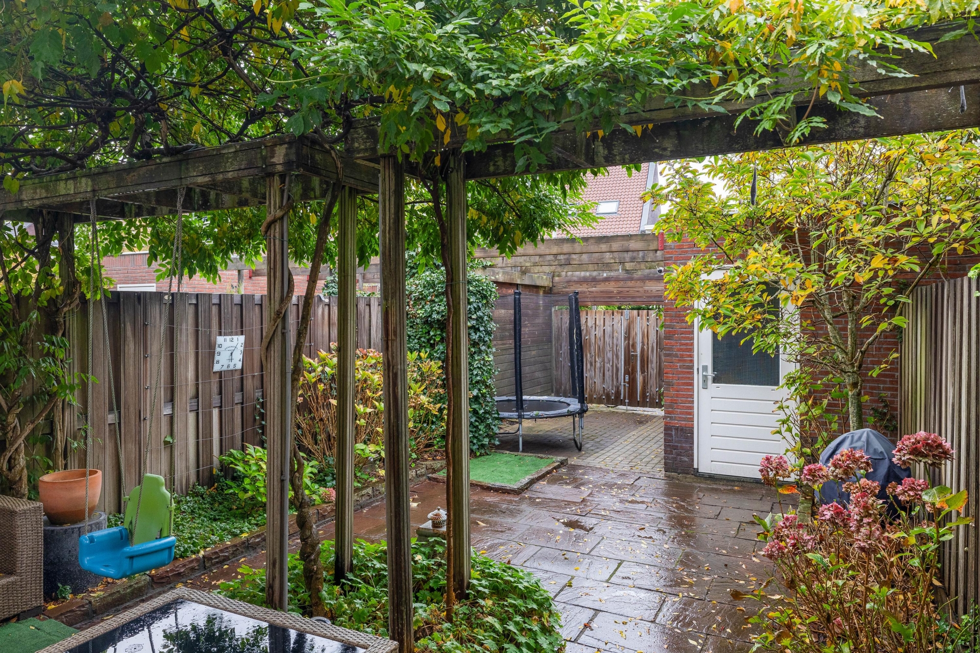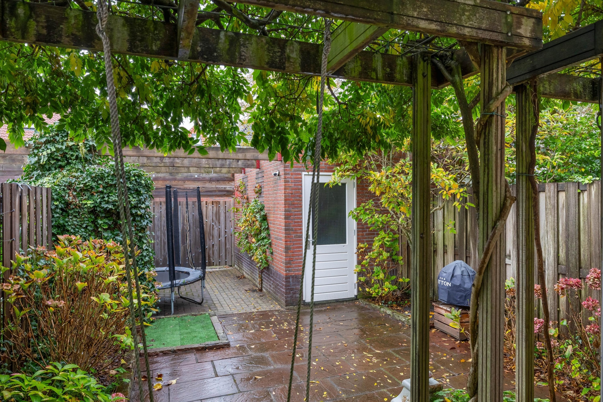 De achtertuin ligt op het noordoosten en is ongeveer 73 m² groot. Dankzij de diepte van bijna 13 meter is er altijd wel een plekje in de zon of schaduw te vinden. De tuin is verzorgd aangelegd met sierbestrating, borders, een gezellige pergola en een achterom. Achterin staat een vrijstaande stenen berging met elektra – handig voor fietsen en tuinspullen. Ook is het mogelijk om op eigen terrein te parkeren, een groot pluspunt in deze wijk. De voortuin is eveneens netjes en biedt ruimte voor bijvoorbeeld een zitbankje of extra groen. Dankzij de rustige straat zonder doorgaand verkeer is het hier prettig toeven.