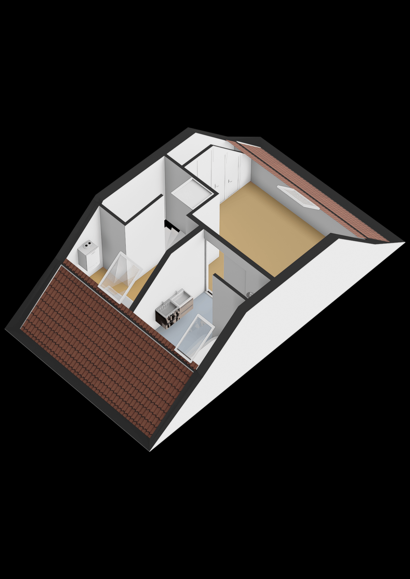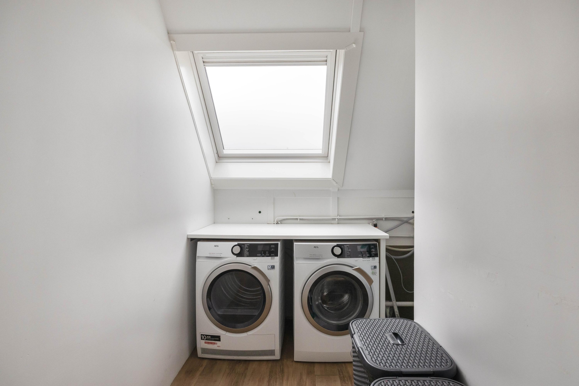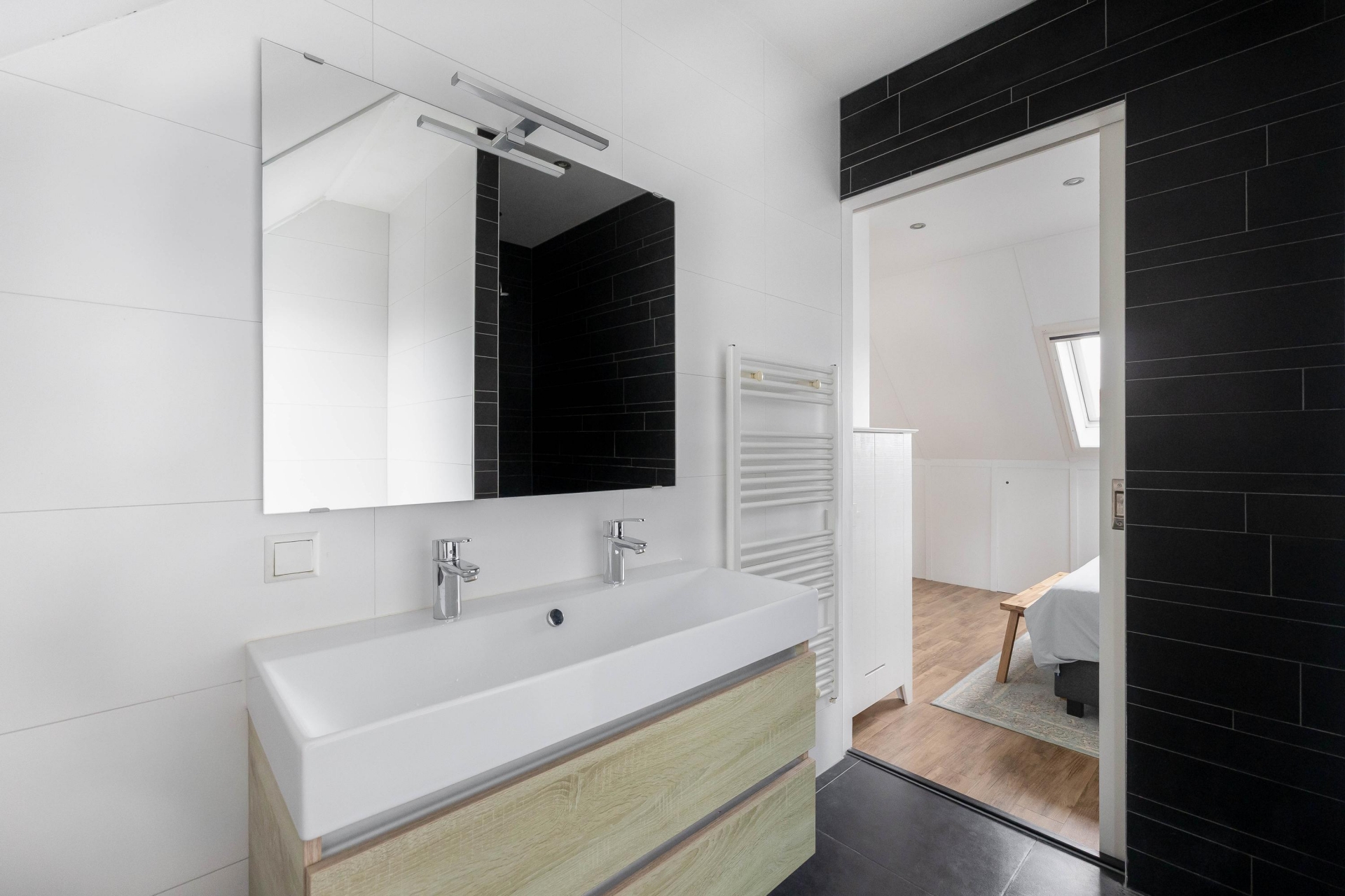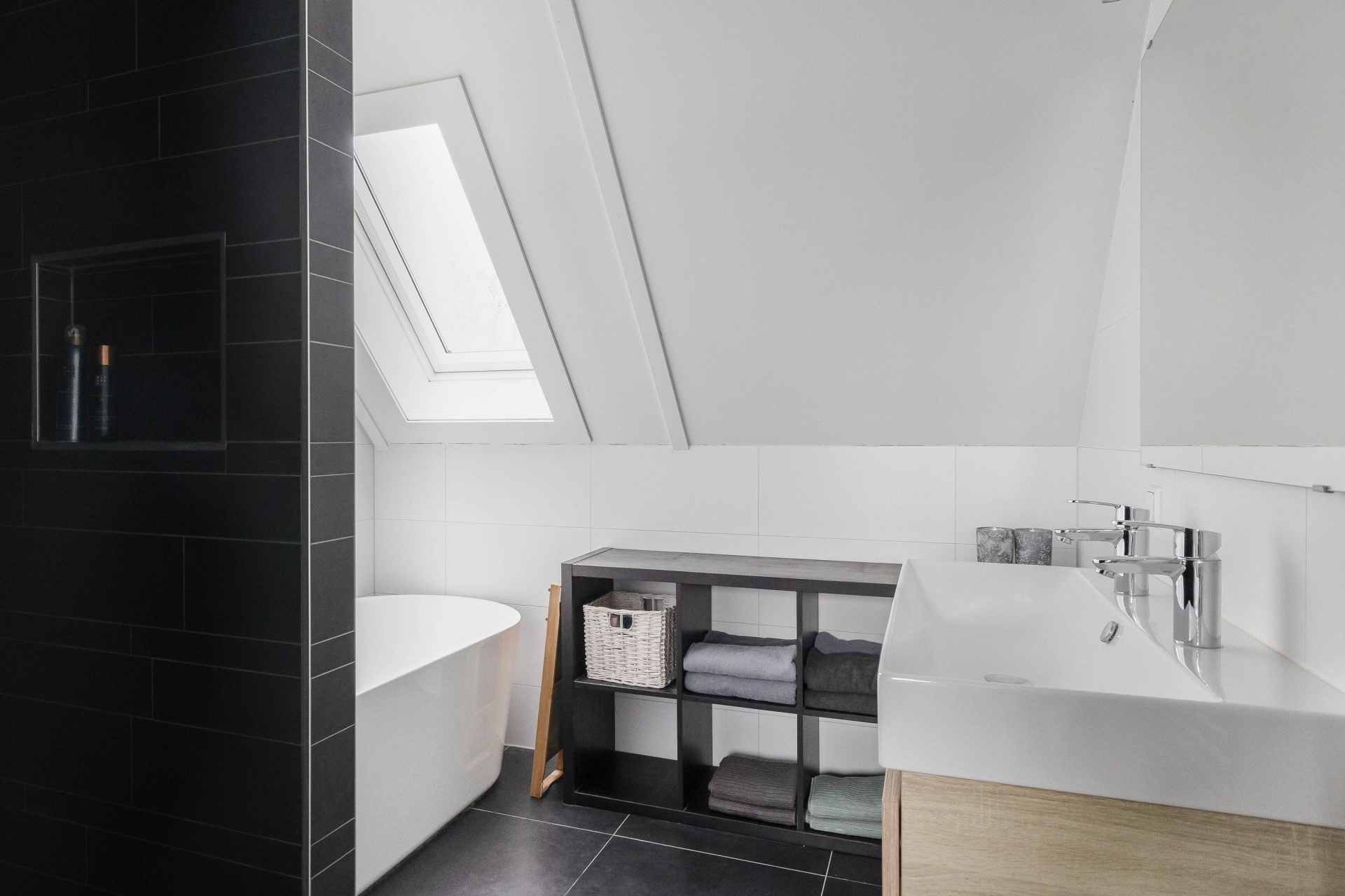 De zolderverdieping is verrassend ruim en ingericht met een 4e slaapkamer en een tweede badkamer. Deze badkamer is uitgevoerd met een ligbad, inloopdouche, wastafelmeubel en dakraam. Verder vind je hier ook een praktische wasruimte en extra bergruimte.